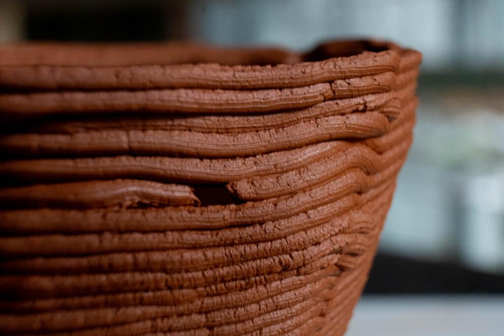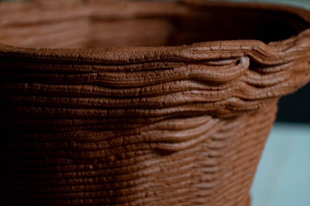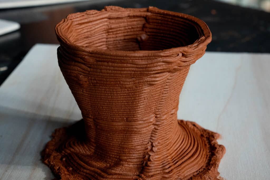 The robotic-printed cup uses Grasshopper and Kangaroo to prototype a self-supporting organic structure. The form adapts to material behavior, demonstrating how parametric simulation can guide geometry toward stability while retaining a natural, folded aesthetic.