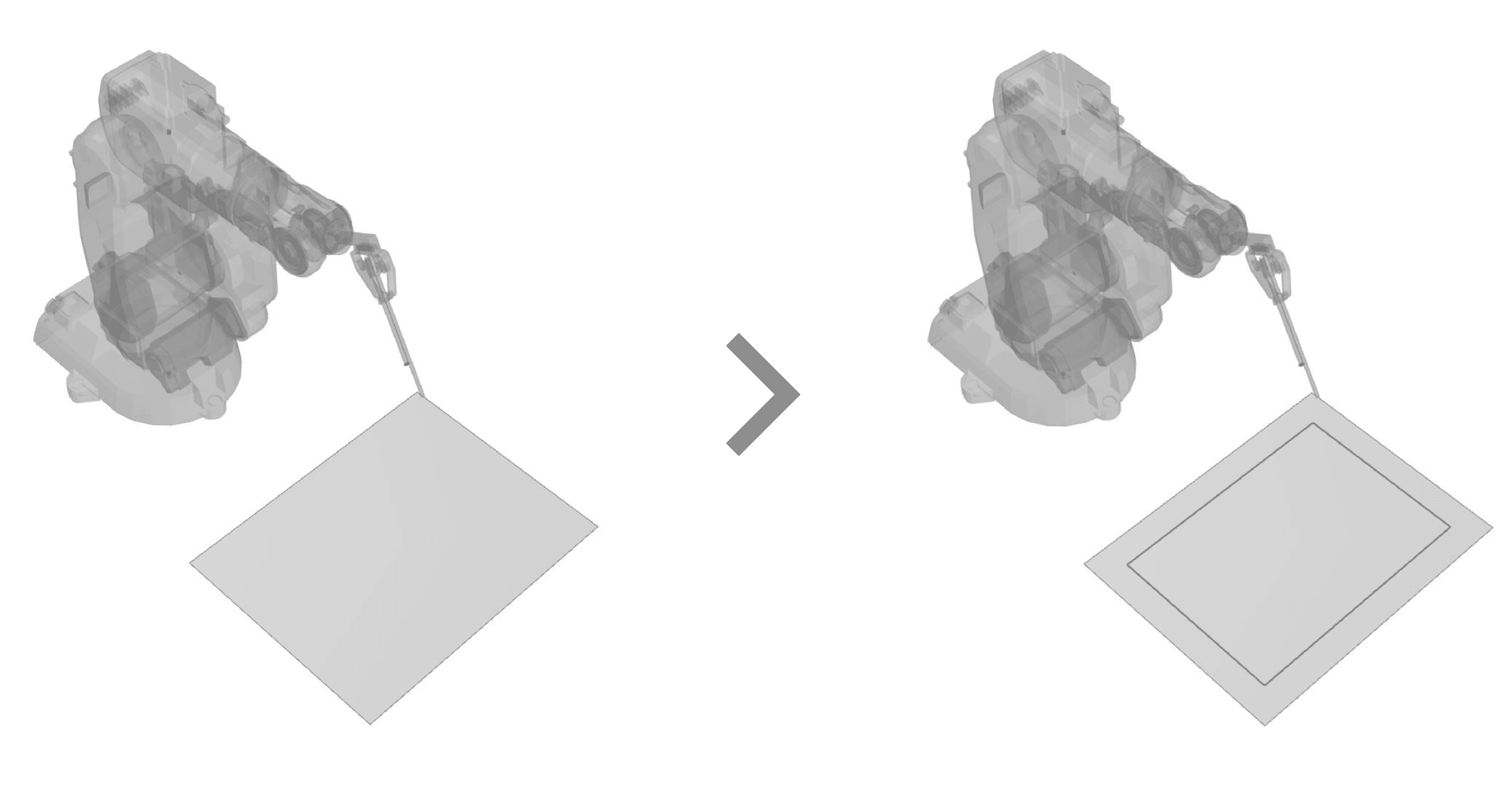 The workflow begins by defining a workspace for the ABB-140 robot, followed by creating a safer, more controlled zone within that space where the brush and paint operations can take place.