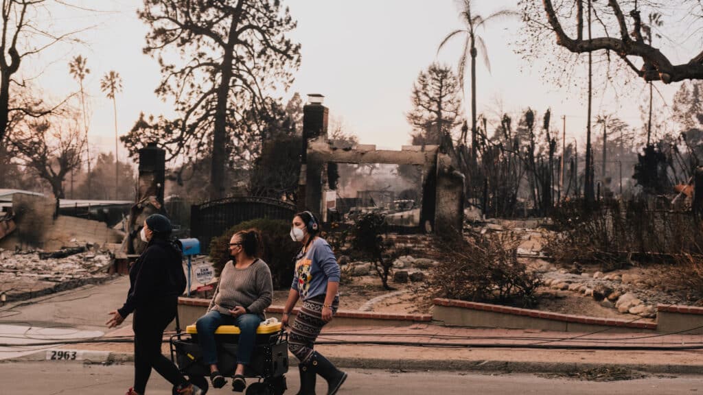 The play opens on a neighborhood clearly destroyed by a fire, quickly the audience learns that this is the recent aftermath of the 2025 California wildfires. A amateur documentary filmmaker and an assistant camera man are walking around looking for subjects to interview for a YouTube documentary on how people cope and recover from natural disasters.