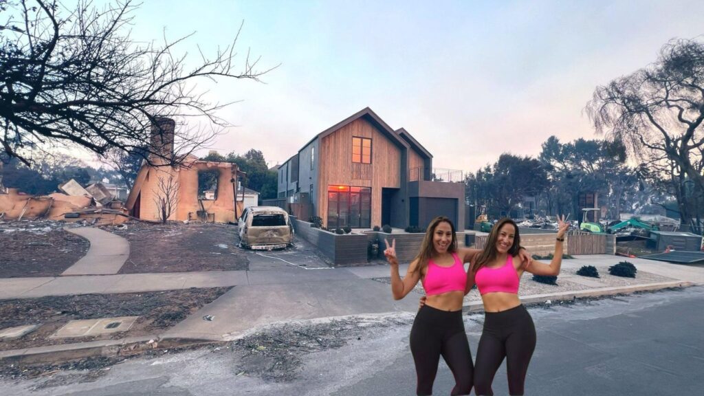 She is interrupted by two trendy young women, twins, Lili and Lola. They have come over ask their neighbor how she is holding up. Luckily, the girls’ home has survived-they had the resources to build a fire-resistant home a few years back. They think that even though it is awful about what happened to people’s homes, this is an amazing chance to rebuild better than before! They represent the view of the “global,” suggesting that human are at the steering wheel of the planet, and the planet is here to benefit their existence.