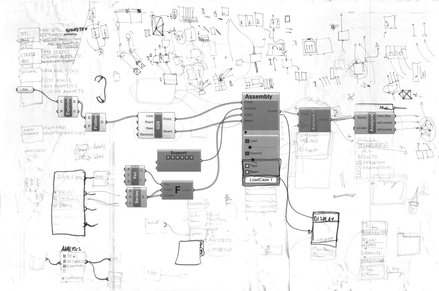 Karamba3D began as a research initiative focused on optimizing irregular truss geometries. Early experiments relied on scripting standard FE software through C#, but long computation times made iterative optimization nearly impossible. This led to the development of a tool capable of delivering rapid structural feedback directly within the design environment.