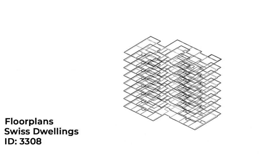 The current dataset forms a strong foundation, but it also highlights the potential for further growth and refinement. The original Swiss Dwellings datset, includes around 3,000 buildings, 42 apartment typologies, more than 2 million datapoints, and over 90 space types.