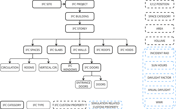 The use of Custom Properties opens the possibility for database enhancement in the future, being our direct next steps to enhance our models with Energy Simulation data.