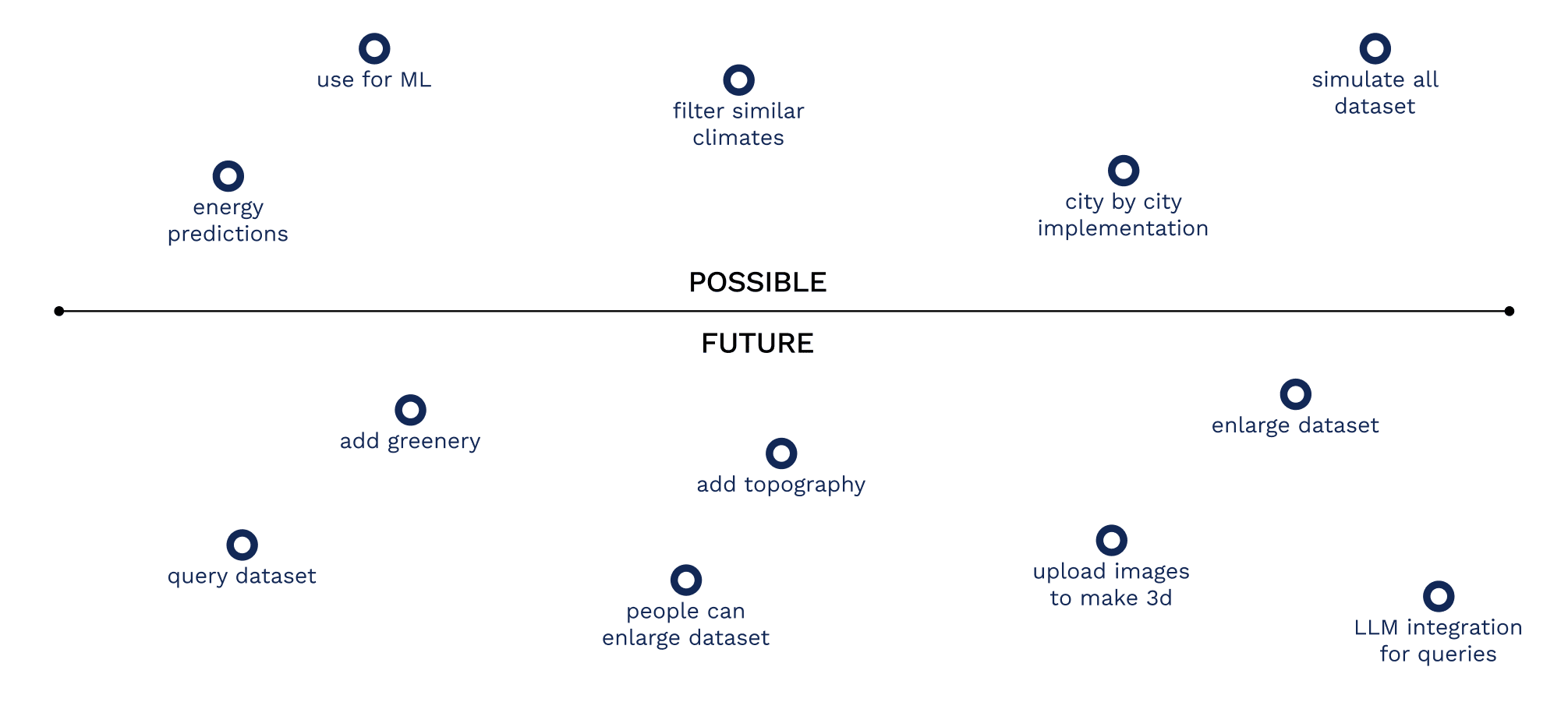 In the longer term, further expansion could include additional building samples, more contextual data layers such as topography or greenery, and integration of real-world measurements to complement simulated values. By broadening the dataset in this way, we move closer to creating a comprehensive, flexible, and open architectural resource that supports both scientific research and design innovation.