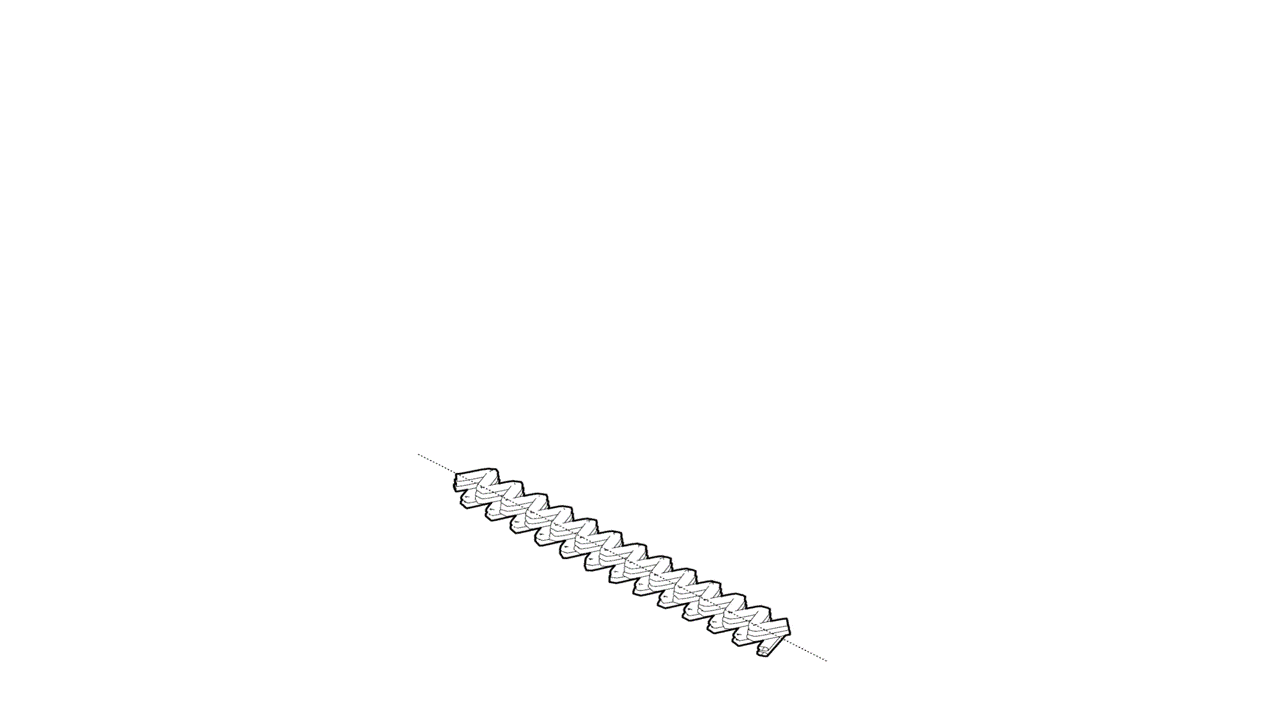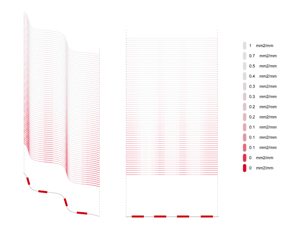This stage also clarified an emerging structural principle: the position, alternation, and direction of the pattern shape the load path and guide stresses. The alternating pattern created a balanced cross-section around the central axis, improving lateral stability and reducing early deformation. These insights encouraged a parallel optimisation of geometry, printing logic, and material efficiency to maximise printable height while limiting time and material use.