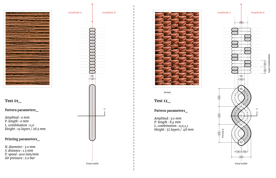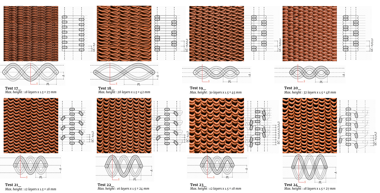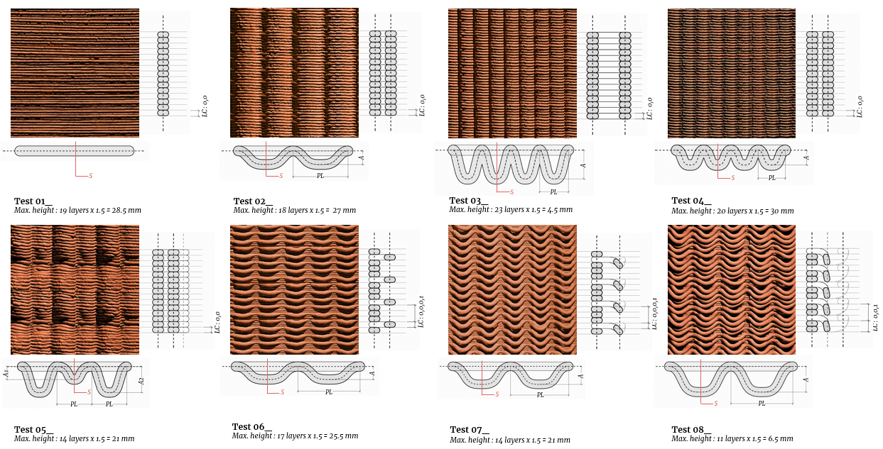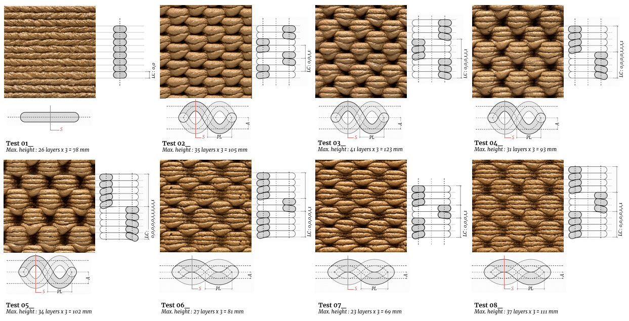 Overall, the experiments confirm that geometry itself can act as a structural stabiliser, enabling more efficient and reliable printing processes, and opening new directions for integrating texture as a functional driver—not merely as an aesthetic layer—within earthen architecture.
