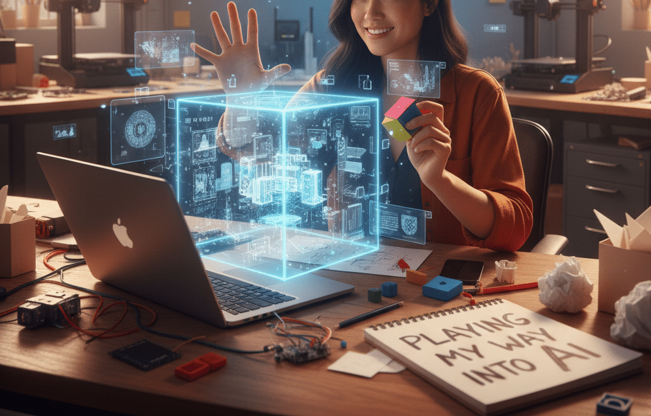 I’ve never really thought AI would completely replace me. But I’ve discovered something more important: play is my way into this world. Not defensive use, not just debugging code, but genuine experimentation. Messing around. Breaking things. Discovering happy accidents.