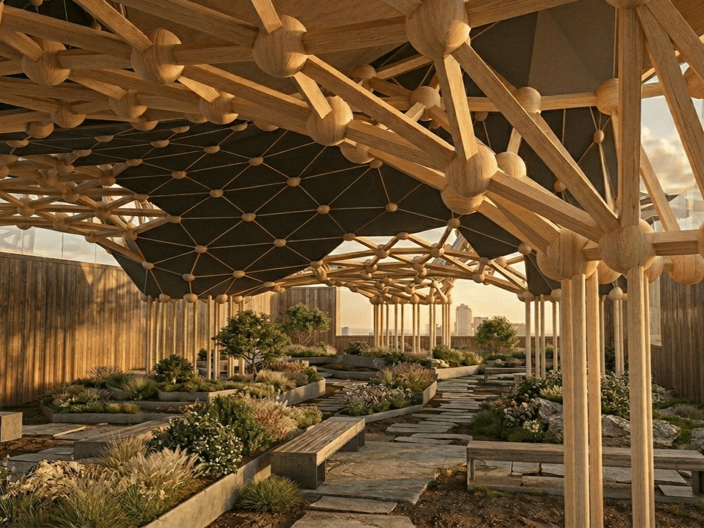 This project introduces a high-performance terrace pavilion that merges environmental data with advanced robotic fabrication. The design process began with a comprehensive solar and circulation analysis, identifying thermal hotspots and vantage points to determine the optimal balance between shaded gathering areas and open viewing corners. The resulting structure features a complex, interlocking timber geometry that … Read more