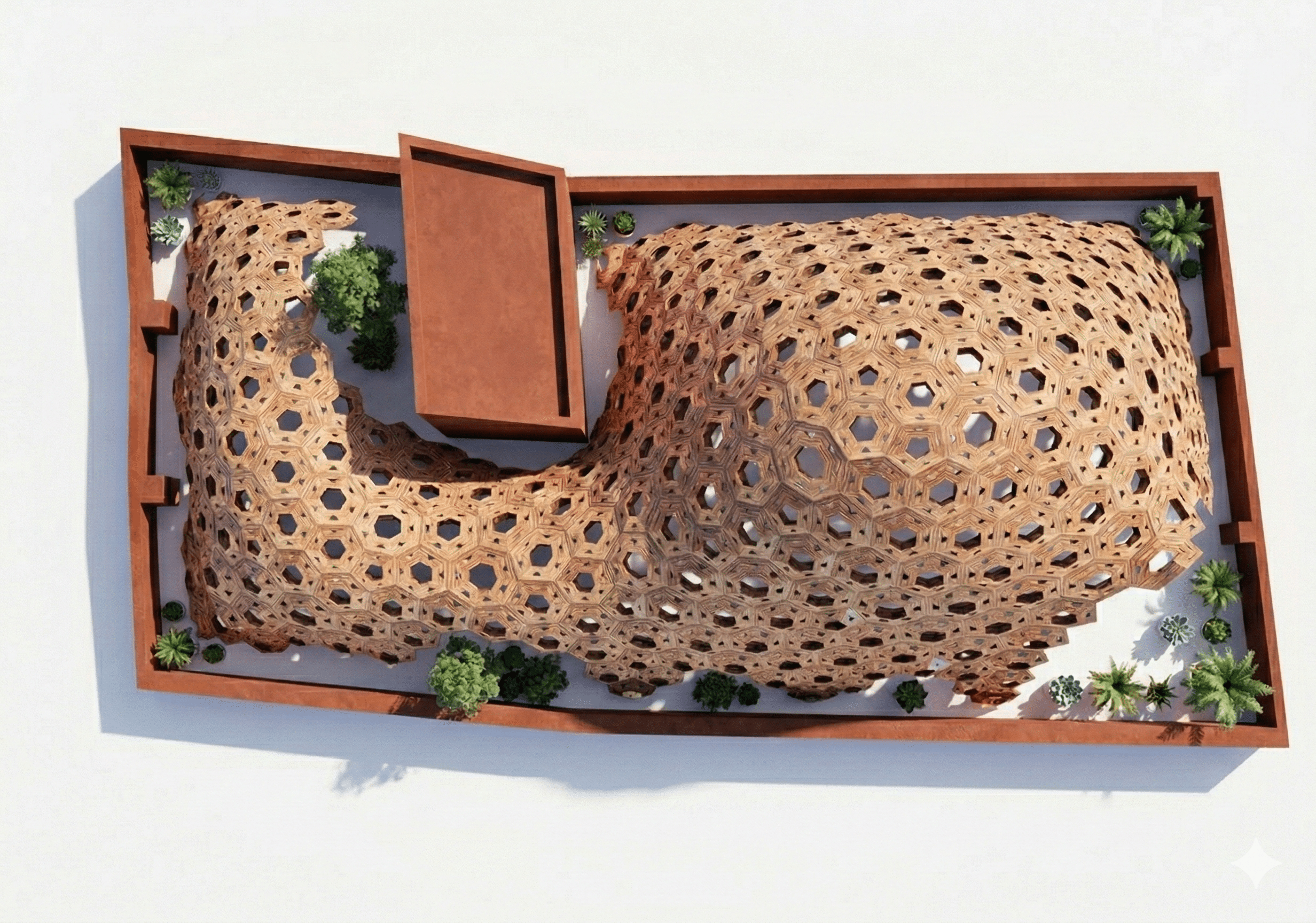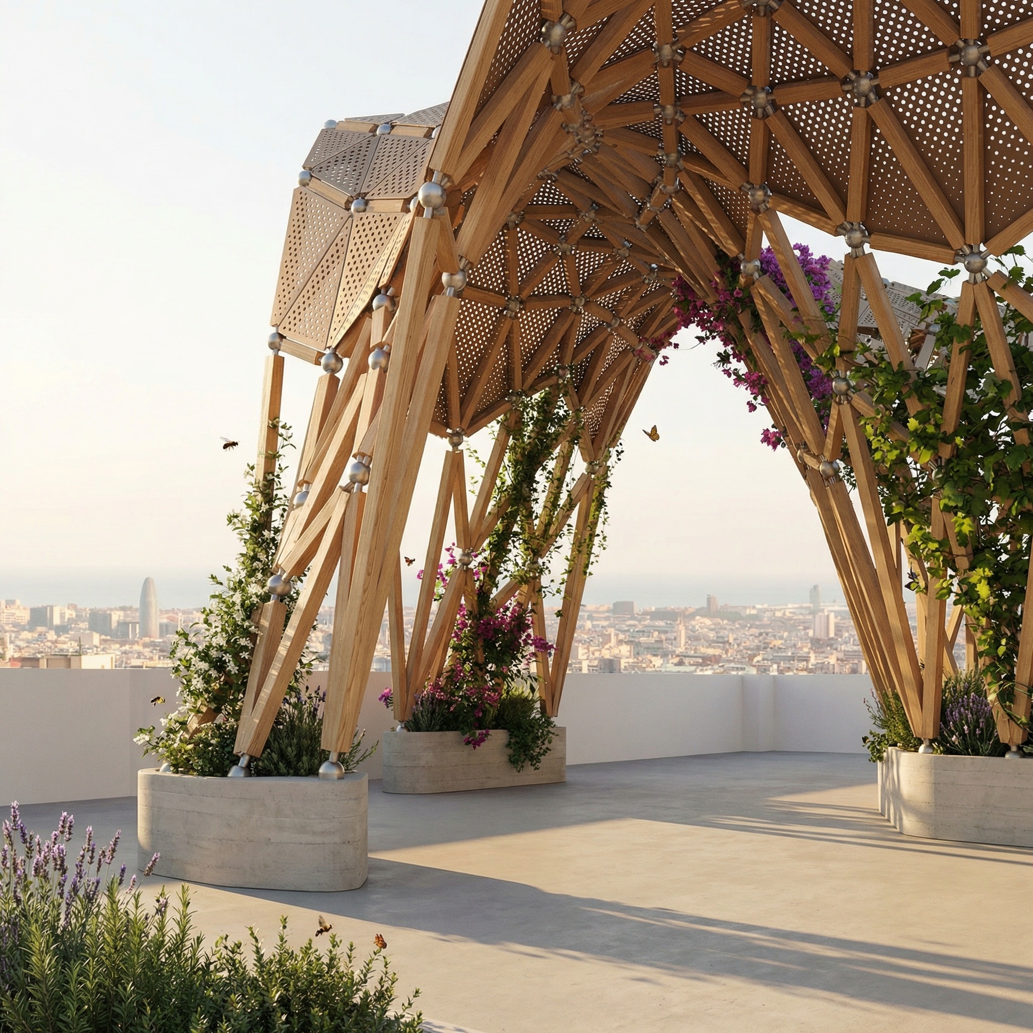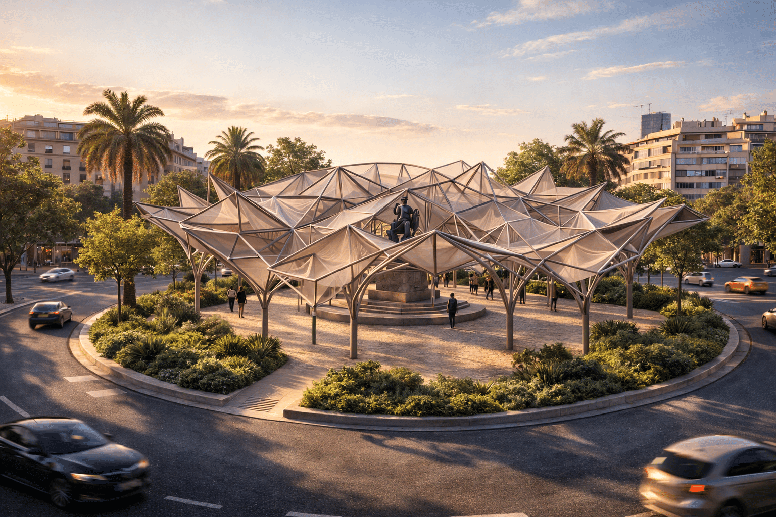 Tetuán Lattice Canopy Tetuán Lattice Canopy is a lightweight tensile pavilion proposed for Plaça de Tetuan. Inspired by the plaza’s circular geometry, the project uses a hexagonal lattice to organize a structural field around the central monument. Hexagons are transformed into a three-dimensional network supported by branching columns. Fabric-like meshes are tensioned between the segments … Read more