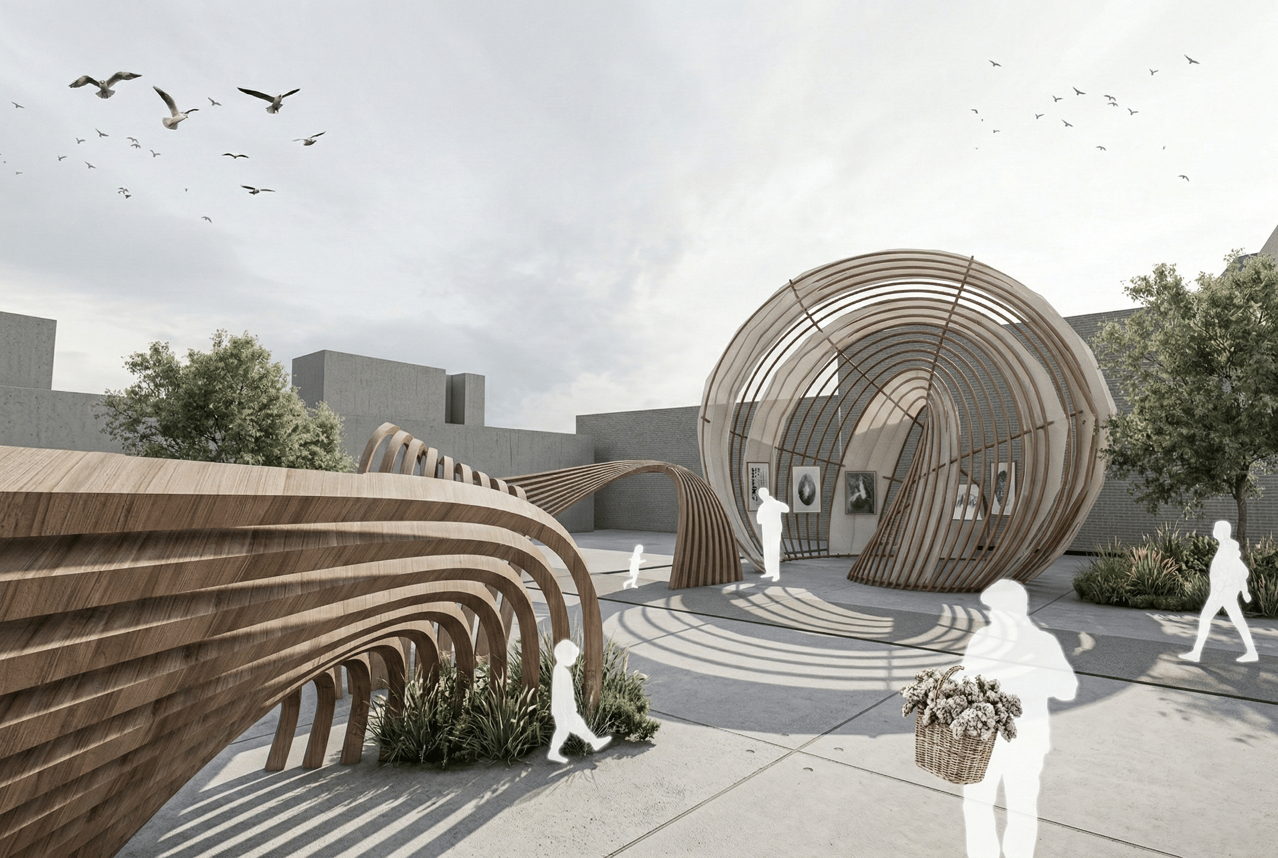 The Urban Oasis Pavilion is a temporary installation in Plaça Catalunya that transforms one of Barcelona’s busiest urban nodes into a space for shade, rest, and social encounter. Its porous, flowing surface filters light, noise, and heat to create a more comfortable microclimate within the dense city environment, offering a place for pause and relief … Read more