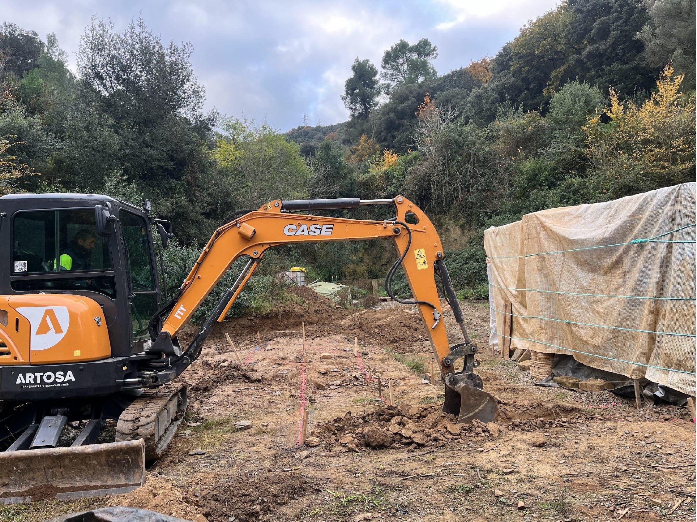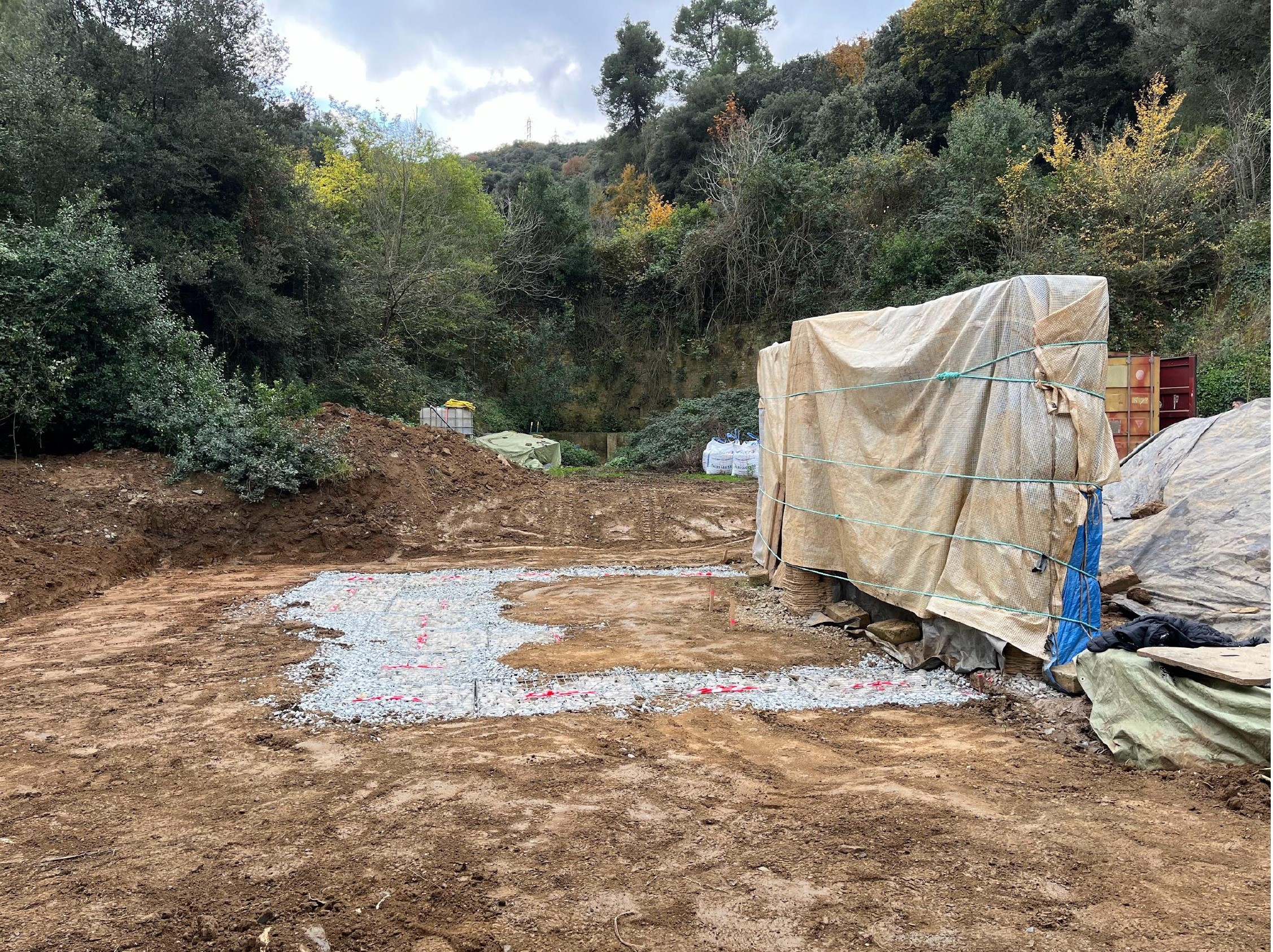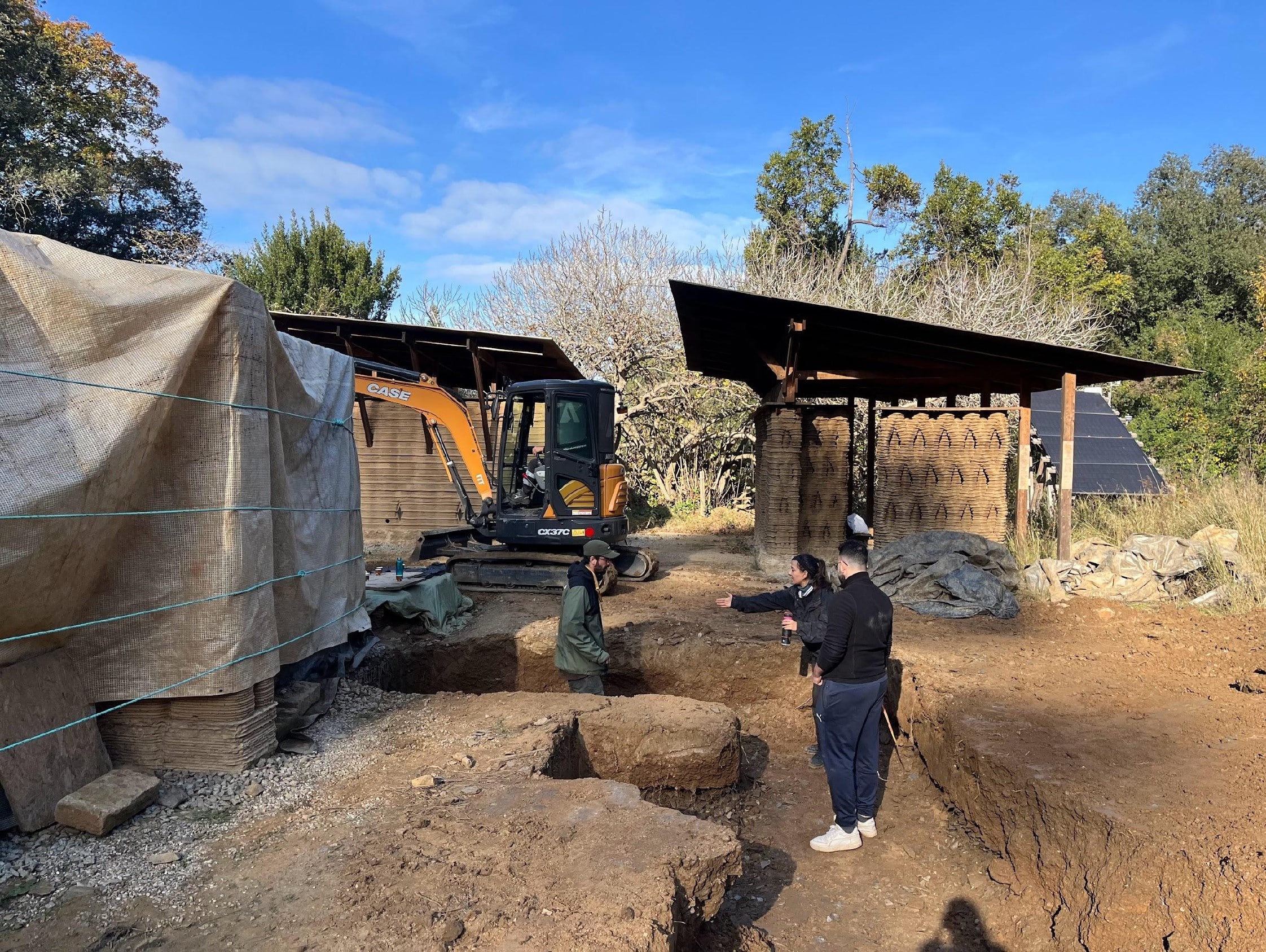 2. Excavation The top soil was dug to the side, while the rest, all the way to the bedrock was put to the side to use for the walls