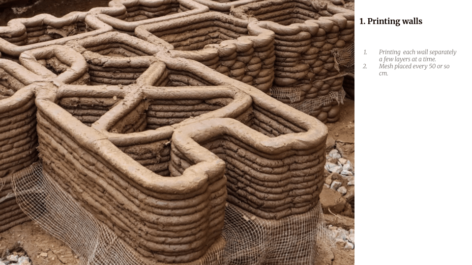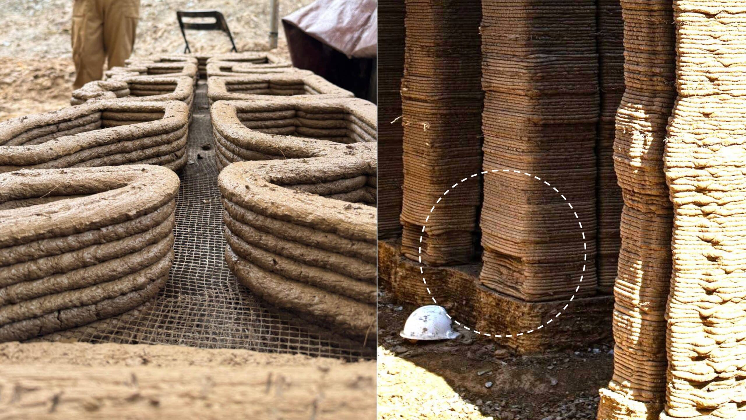 Inserting vertical wooden rods during 3D earthen printing boosts wet state stability, enabling 50% taller builds. Vertical reinforcements proved more effective than diagonal ones, and future work will explore stronger materials and automation.