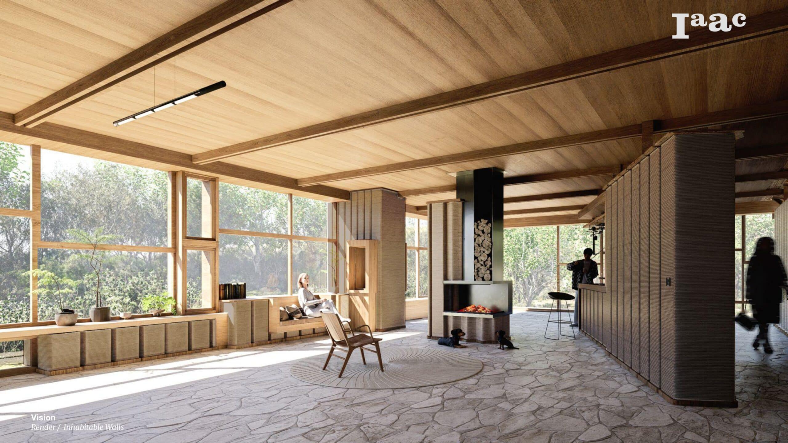 The IAAC prototype represents the consolidated outcome of this year’s research, translating experimental findings into a single, spatially resolved architectural artefact. Conceived as a small-scale residential unit, the prototype integrates a private room, an attached living space, and a compact kitchenette, organised to function as a continuous yet clearly articulated interior volume.