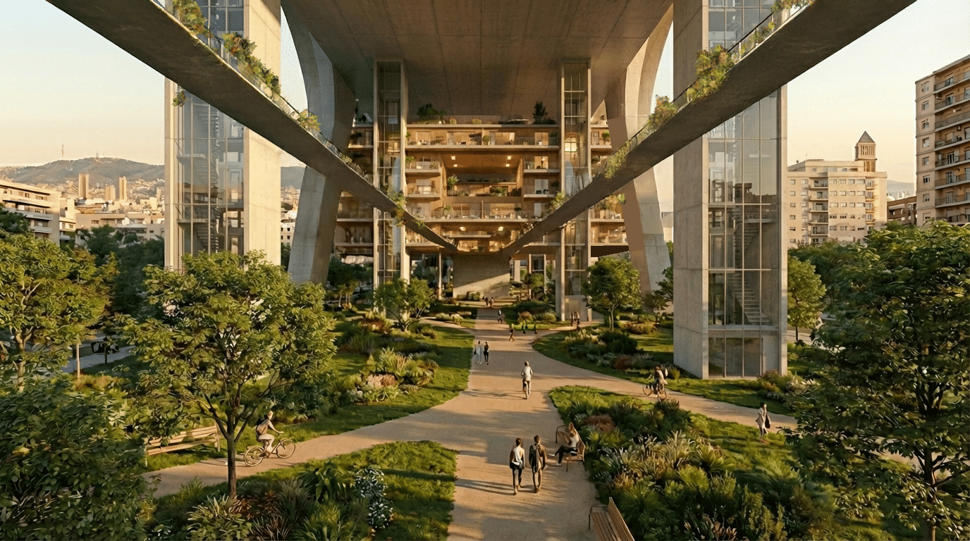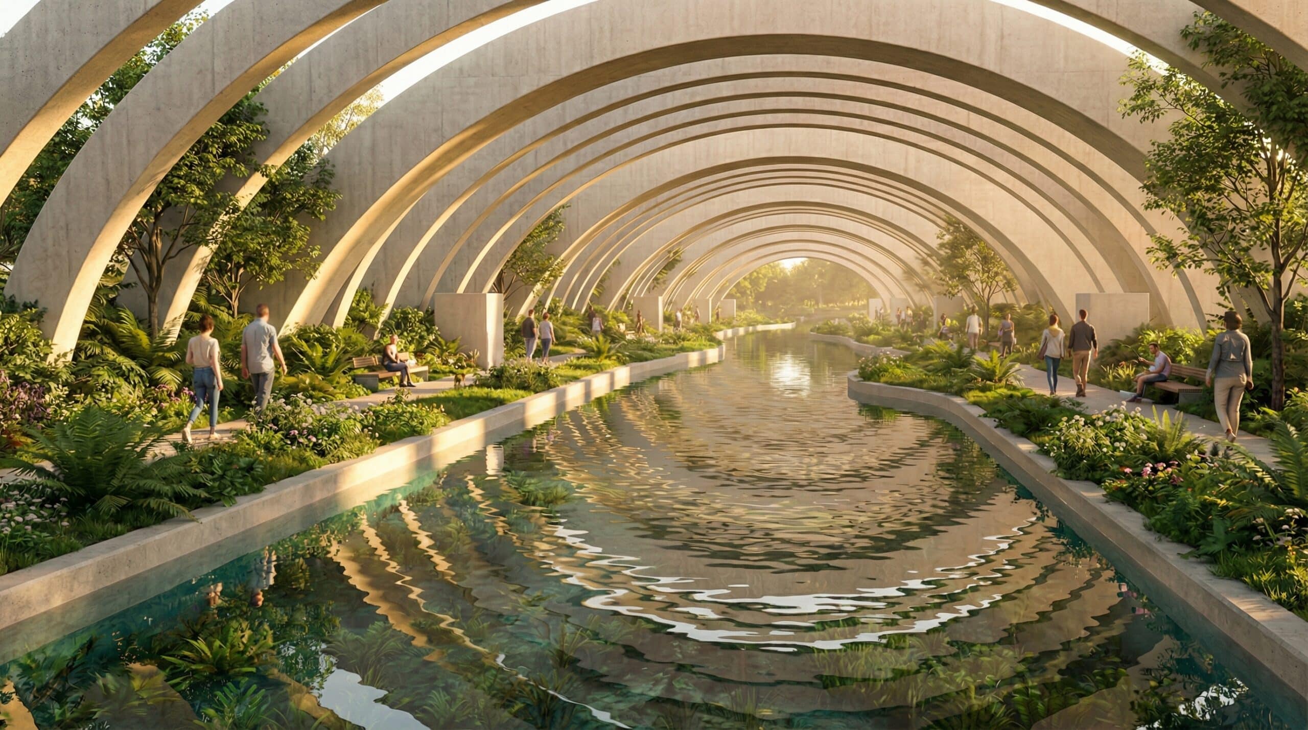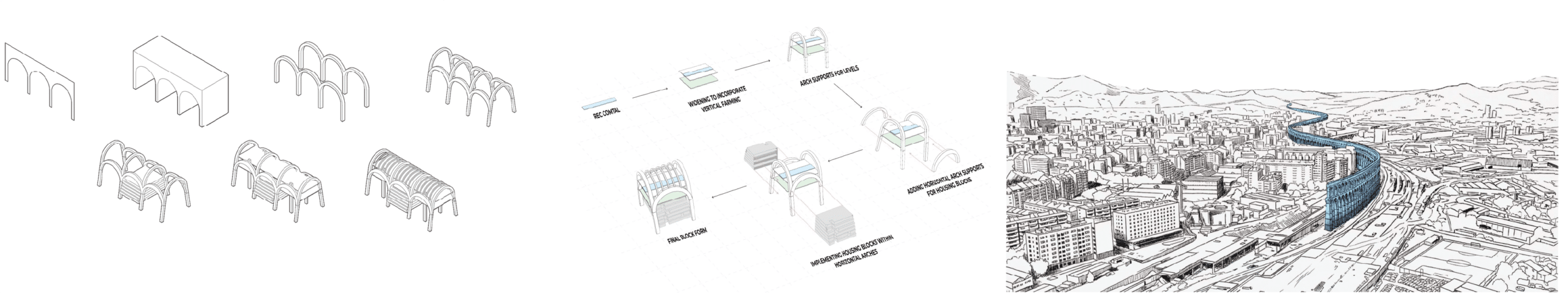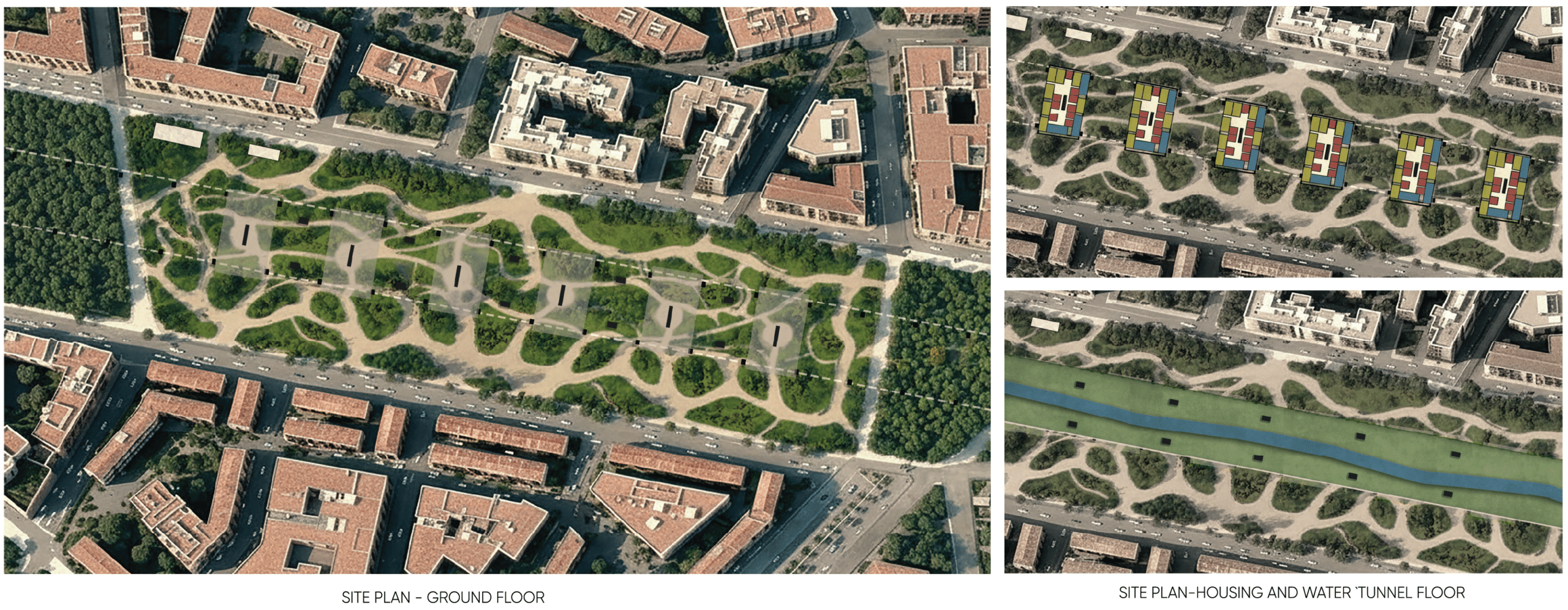 By reimagining the historical use of aqueducts in Barcelona, we adopt the same logic to bring water back into the contemporary city. Drawing from precedents such as the Rec Comtal, which once carried river water across long distances to structure urban life, our project reintroduces the river into the site through an aqueduct system extending from Vallbona to the Site (La Sagrera Station Park). This linear intervention transforms infrastructure into public space, using water as a connective, ecological, and cultural spine that links territory, memory, and future urban growth.