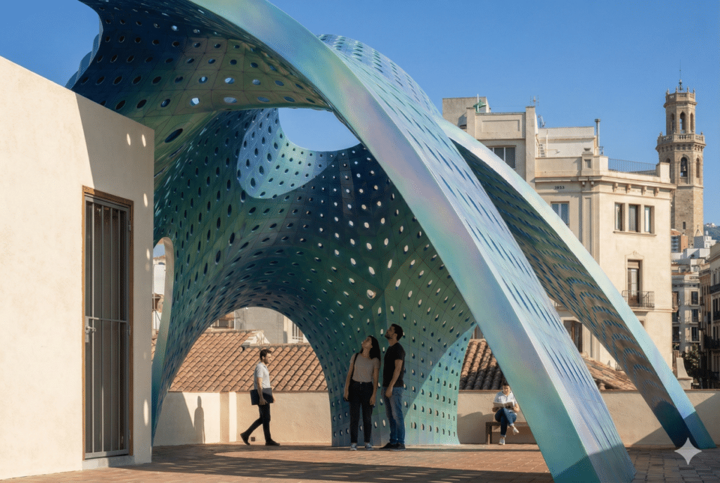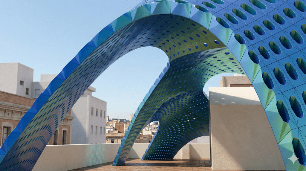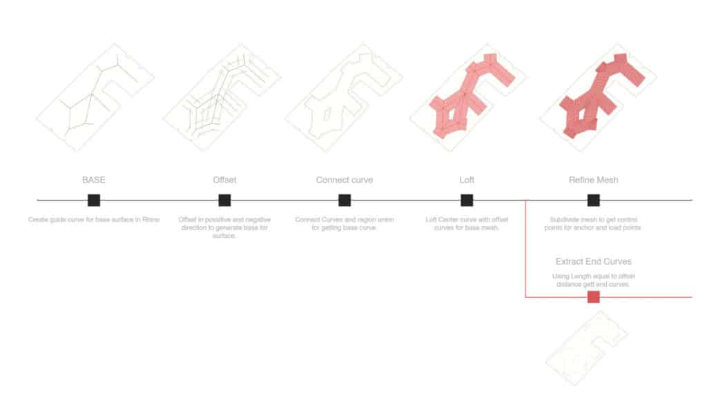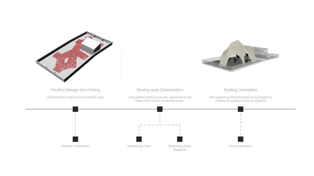 This research explores the intersection of physics-based form-finding and multi-objective evolutionary optimization to design a high-performance architectural pavilion. Utilizing Kangaroo2 for structural mesh relaxation and Wallacei for the genetic optimization of seating. The result is a topologically optimized structure where complex geometry is not merely aesthetic, but a direct manifestation of environmental data and structural logic.