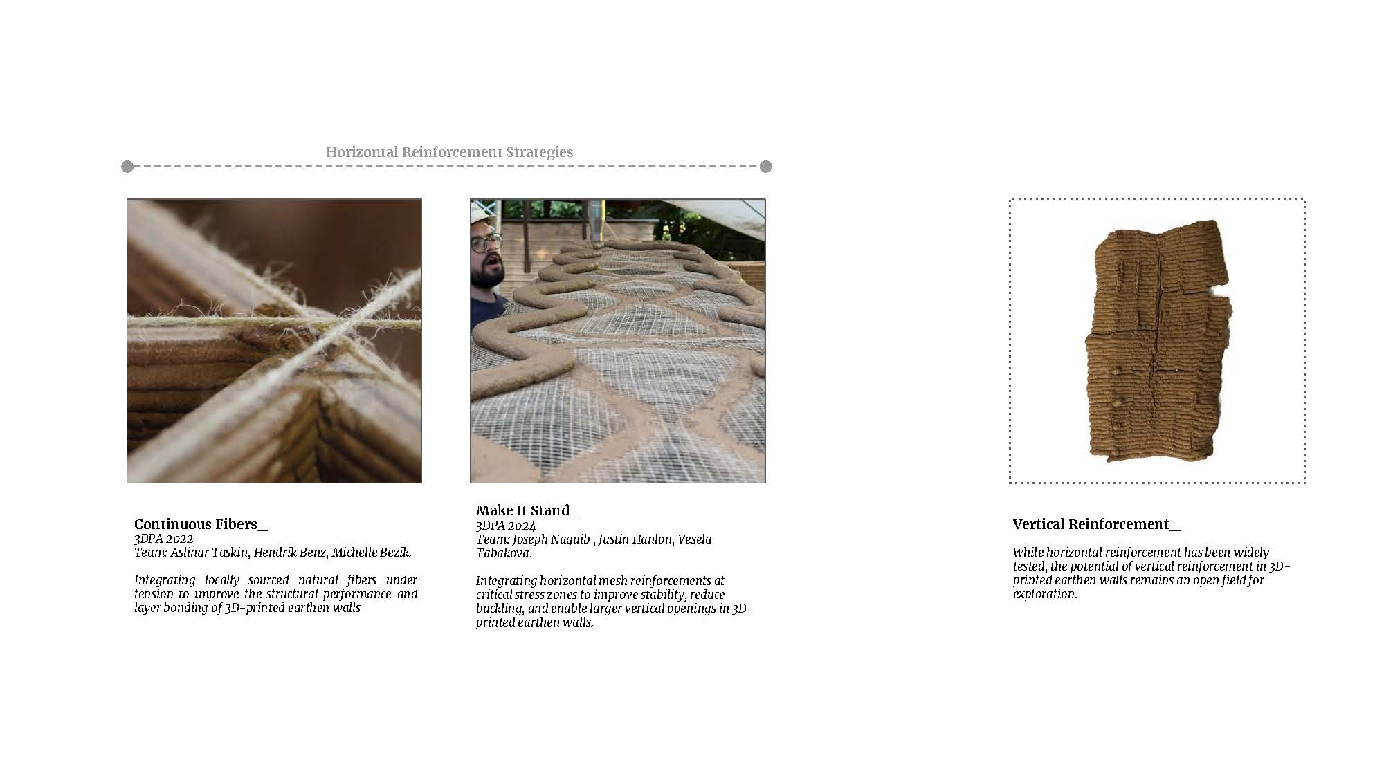 This cross-analysis helps position vertical reinforcement as a valuable but previously underexplored strategy in 3D earth printing.
