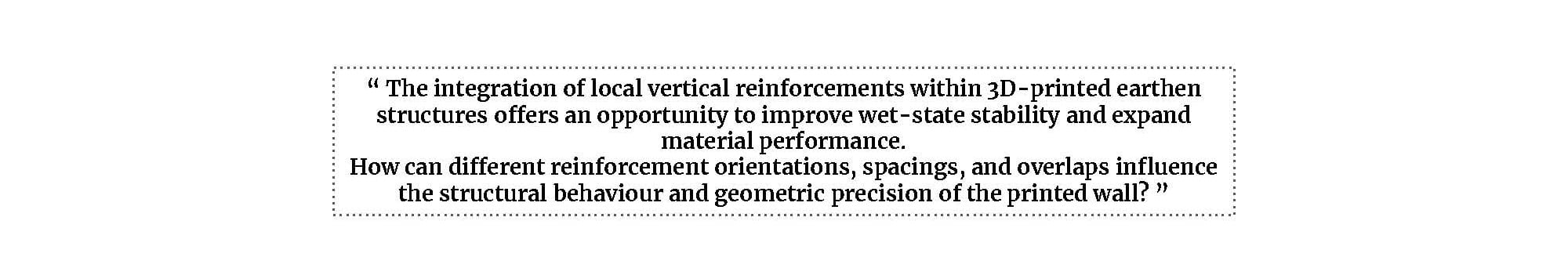 Our research question asks how local vertical reinforcements can improve wet-state stability, and how variations in orientation, spacing, and overlap affect the structural behavior and geometric precision of the printed wall.