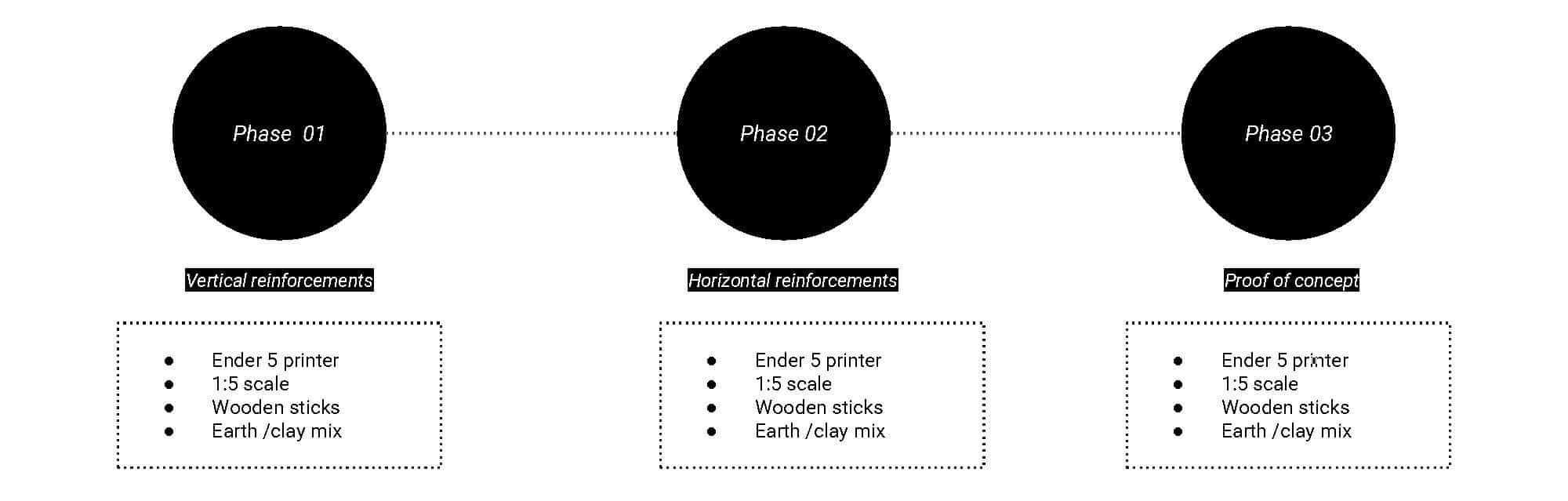 After reviewing the existing research, we defined our main focus: understanding the behavior of earth in the wet state and exploring how vertical reinforcements can improve its buildability.