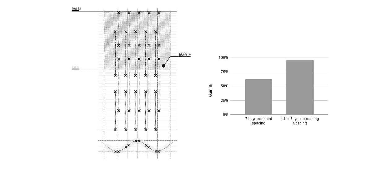 Staggered patterns presented benefits when spacing was large, as the lateral distribution of sticks helped reduce localized weaknesses. However, when the spacing became smaller, staggered configurations introduced handling challenges—such as misalignment and insertion errors—which ultimately reduced consistency. These findings highlight the delicate balance between structural logic and practical constructibility.