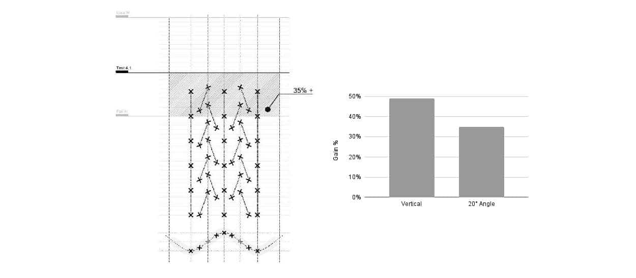 The maximum height achieved in the 1:1 tests was 540 mm, compared to 360 mm without reinforcements. This represents a significant improvement and validates the potential of vertical reinforcement strategies.