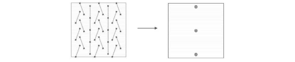 - Aligned sticks, which follow a straight vertical trajectory through the layers.