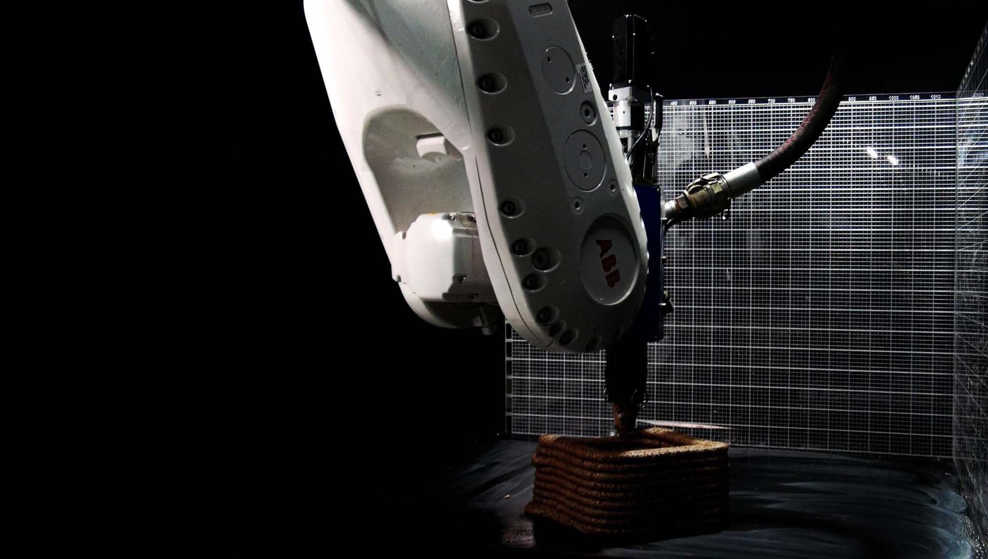 After defining the most effective 1:5 configurations, we scaled them up using an ABB robot with a WASP extruder. The goal was to validate whether the reinforcement strategies would work similarly at architectural scale.