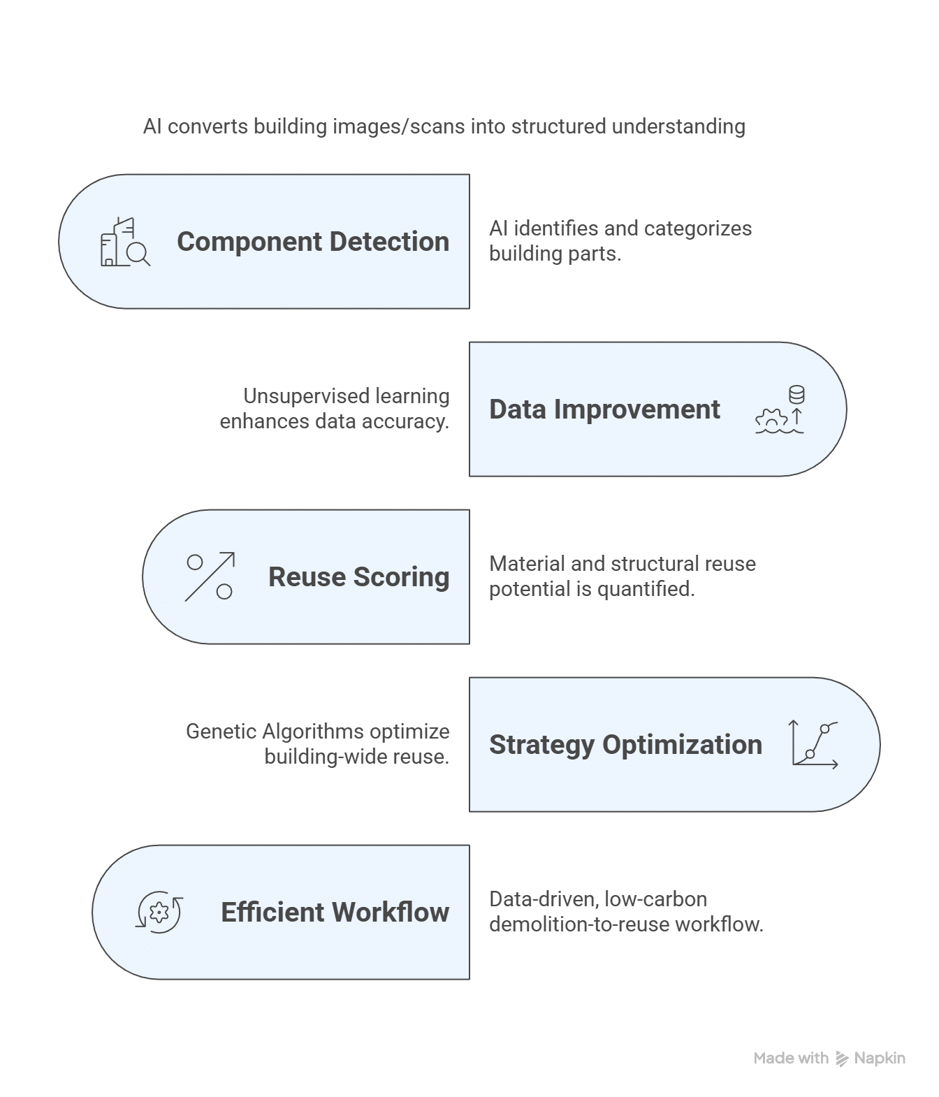 We’re proposing an AI system that takes photos, scans, and basic site info and turns them into a clear, quantified assessment of what can be reused. The goal isn’t to replace human expertise, it’s to give experts better tools and data to make smarter decisions.