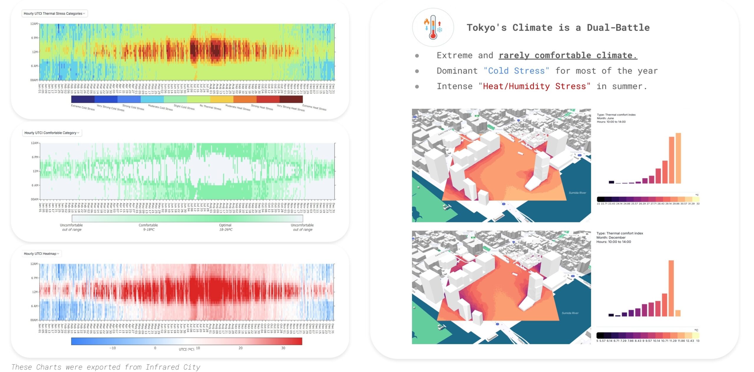Thermal Stress Analysis: We used Infrared.City to pinpoint exactly when and where the site suffers from thermal stress, establishing a baseline for outdoor comfort.
