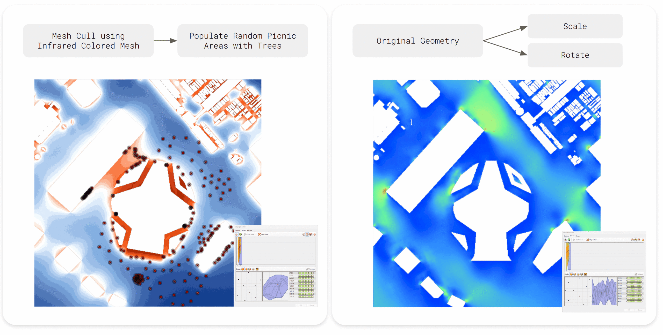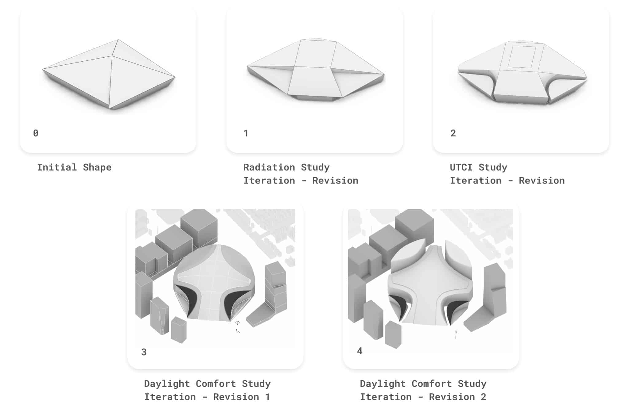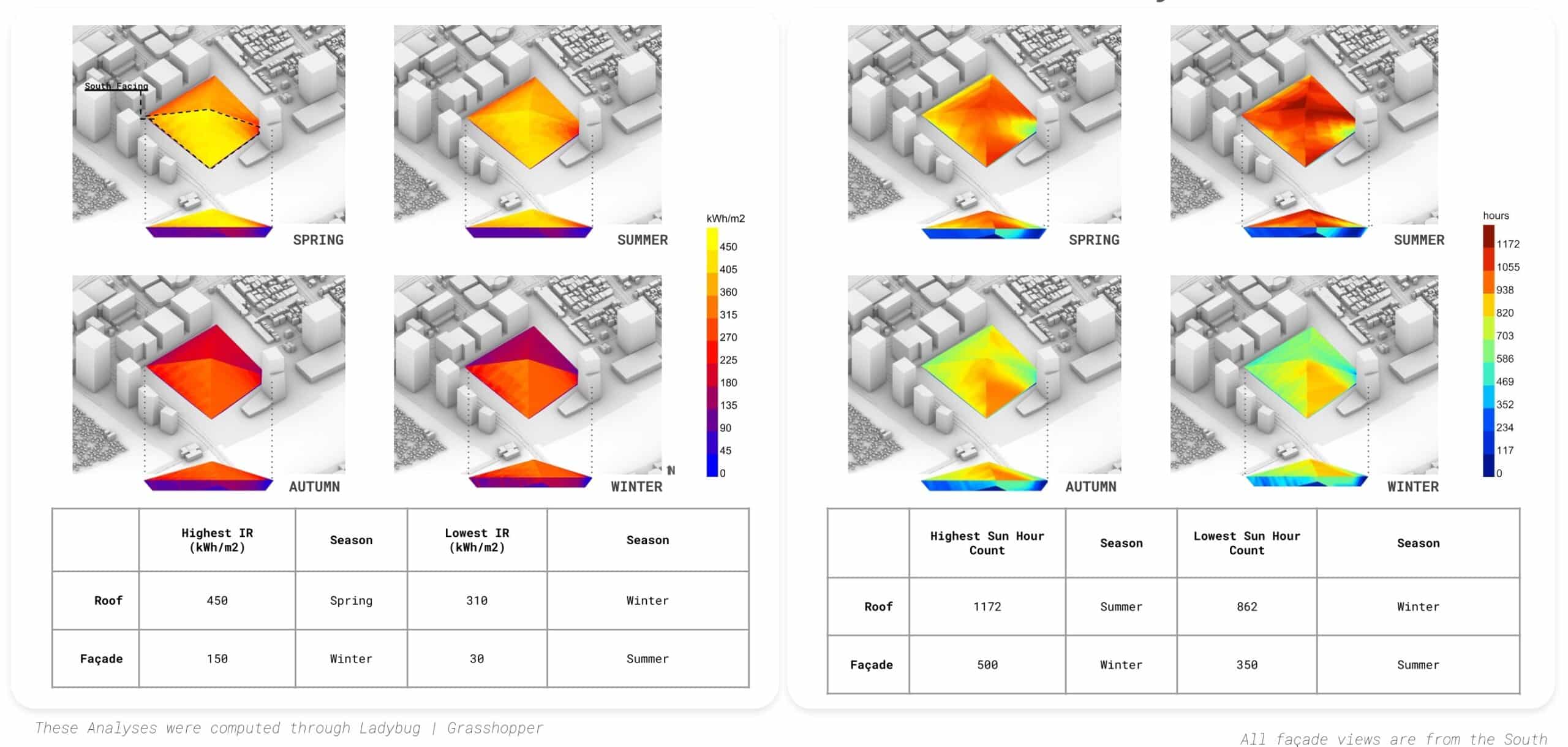 As a final step, to fully optimize the design, we established a validation loop using Infrared.City and Galapagos to fact-check our massing against a full 360-degree rotation. Our findings included: