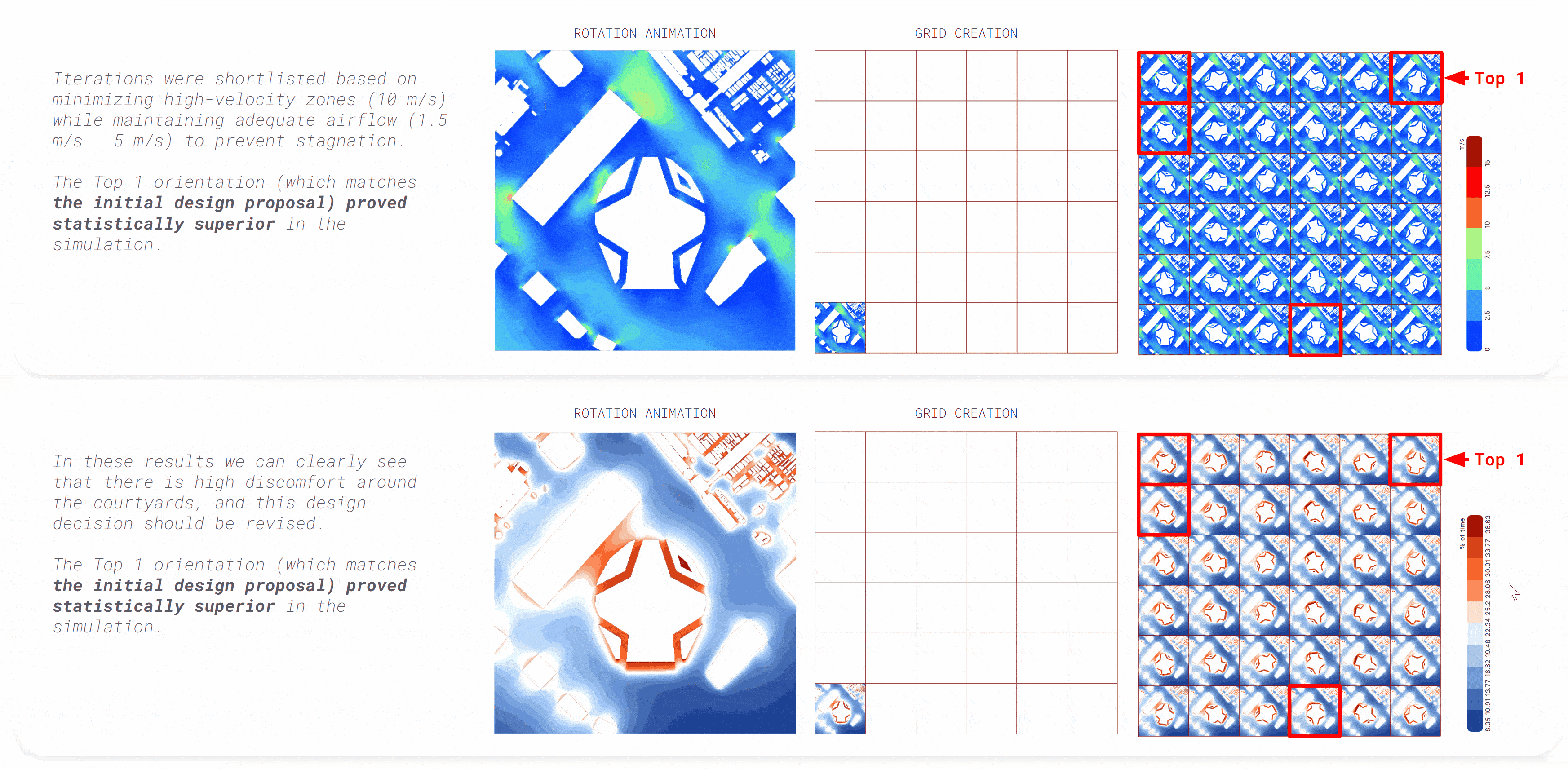 Orientation: Our simulation results indicated that the building’s original orientation was the statistical winner for maximizing airflow.
