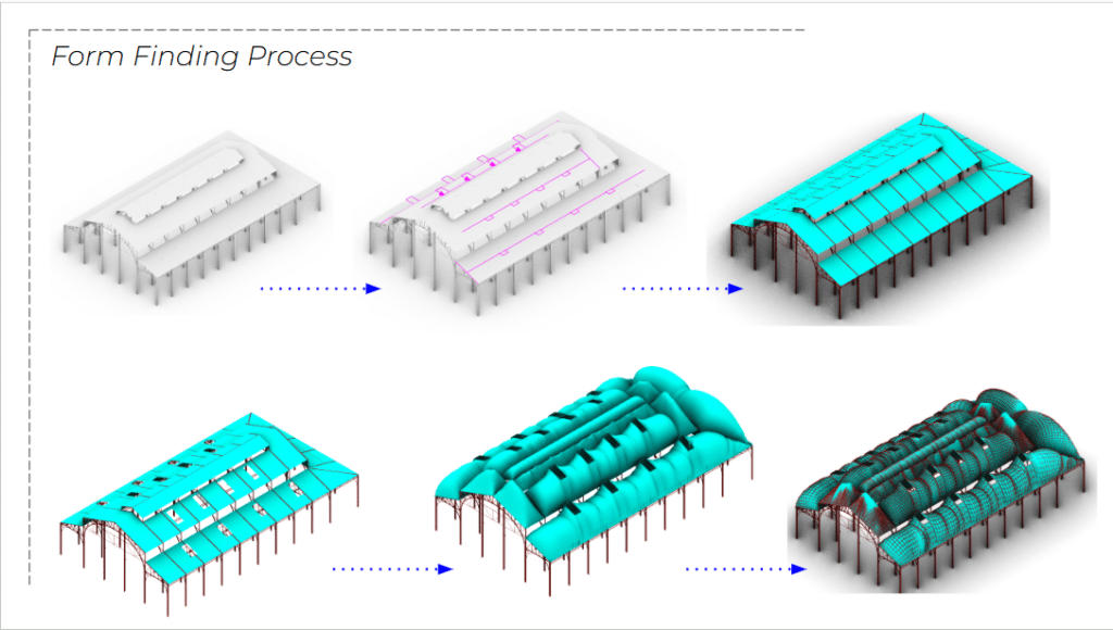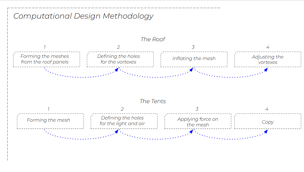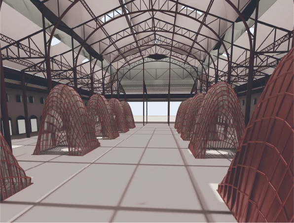 Later on, to improve the interior organization, tents for shopping were proposed. Likewise, they are designed with the same computational steps.