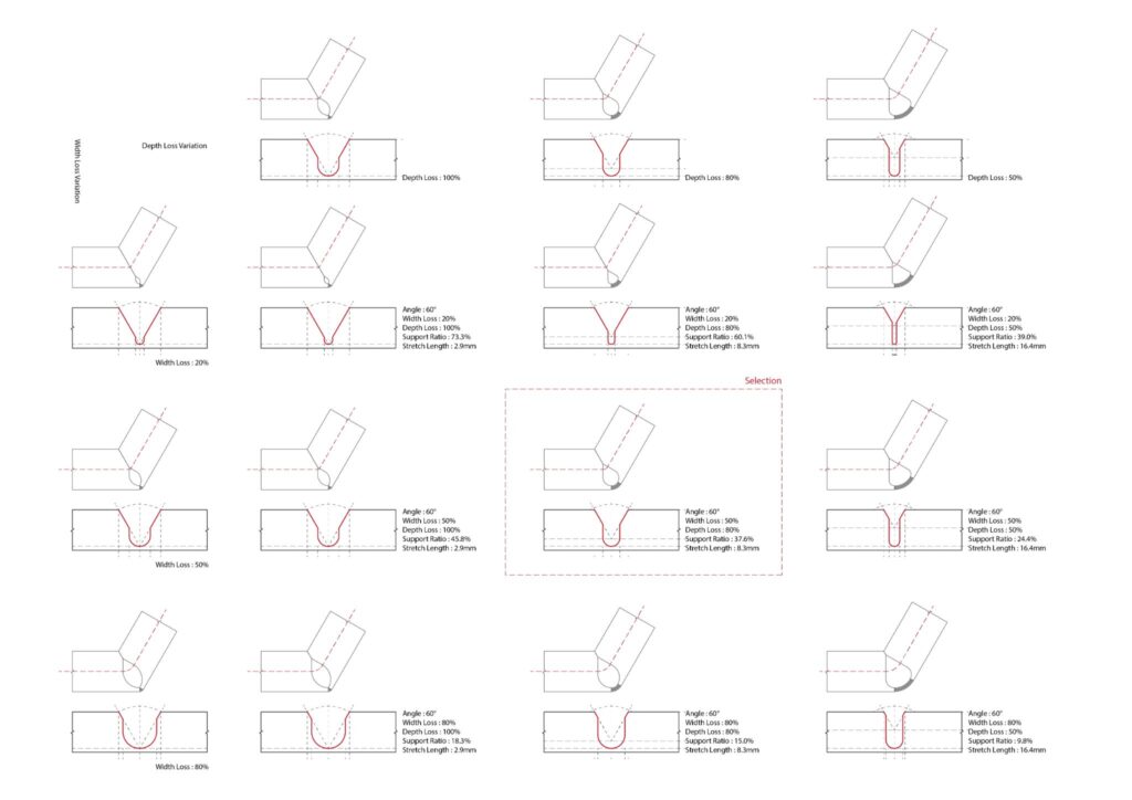 With this early success we further chose to develop how different cuts of depth, angle and style would affect the bending ability of the reed and define its structural qualities.