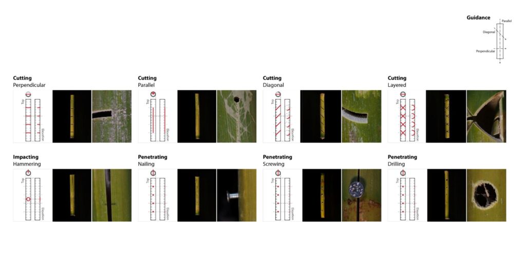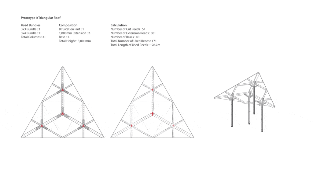 Aware of what was being done in the traditional vernacular and understanding how the material reacted from our experiments, we also looked to what is being done in contemporary practice. Led by firms such as CanyaViva modern techniques typically look at how the material can be bundled and bent due to the material’s natural tensile strength.
