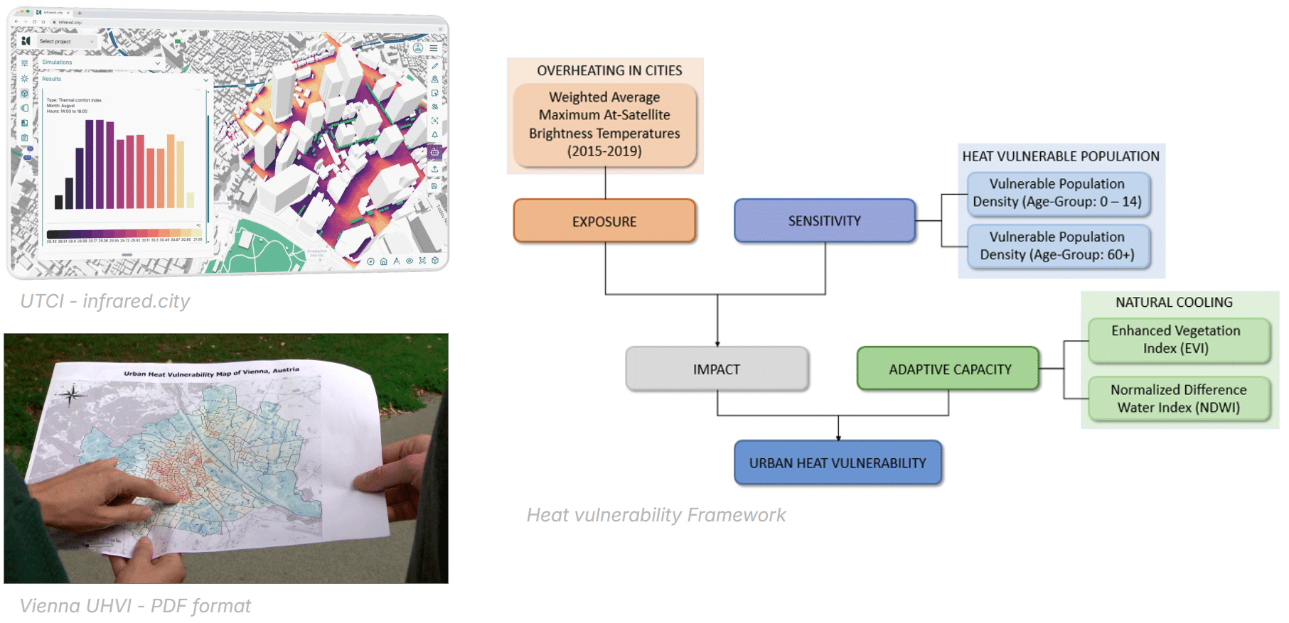 Most existing tools focus on UTCI, the Universal Thermal Climate Index. It measures how hot it feels outdoors and gives one single value for the entire population. While this is useful, it doesn’t show who is most affected or how high the risk is.