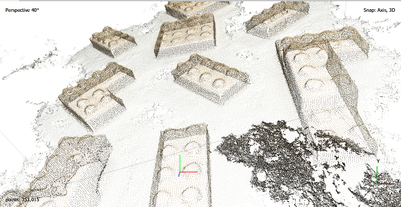 We tried to use YOLO from the original RBG images as an overlay to the point cloud to confirm which brick were desirable.
