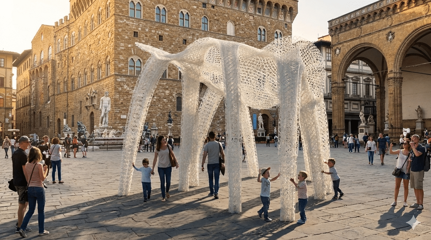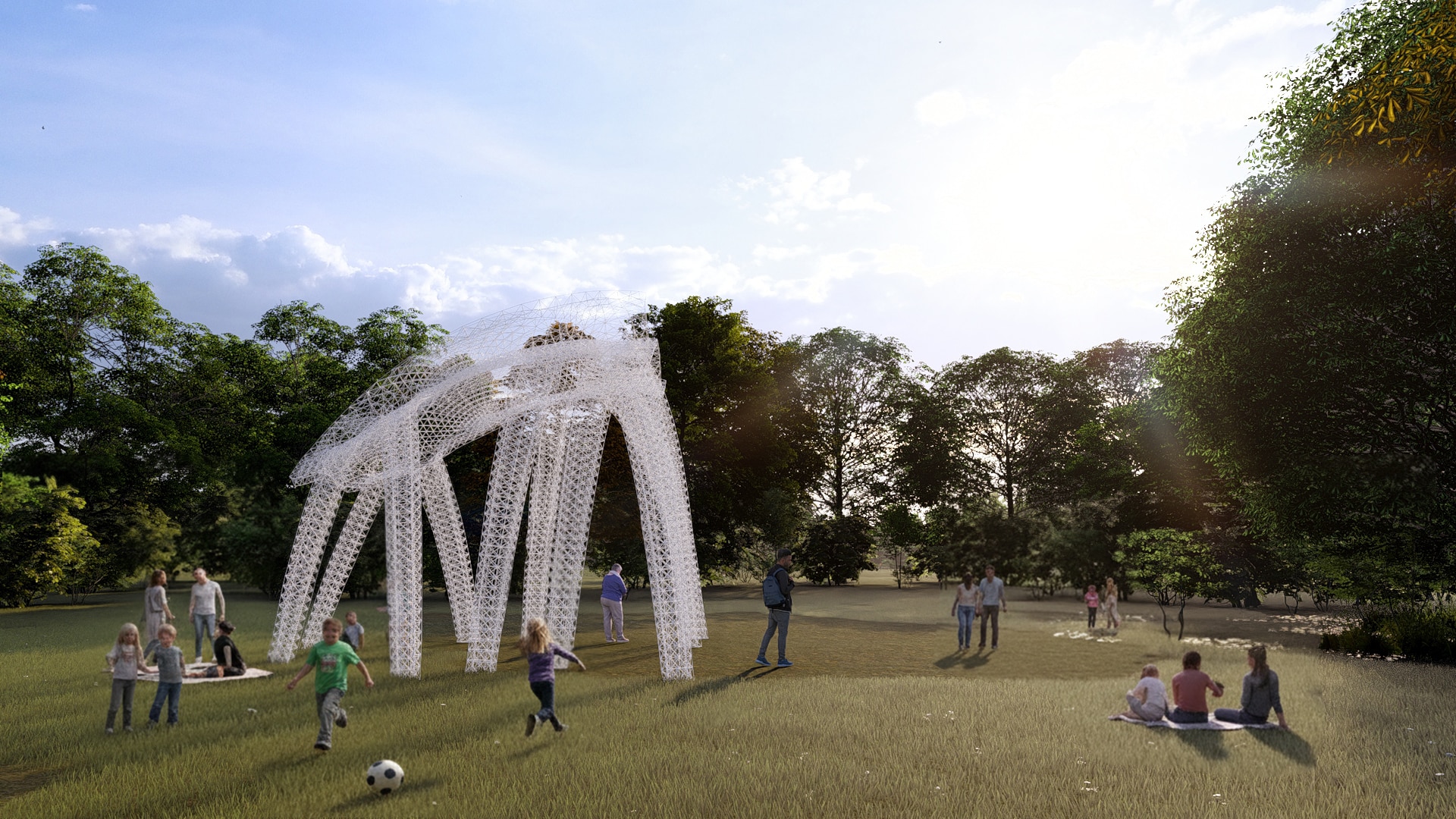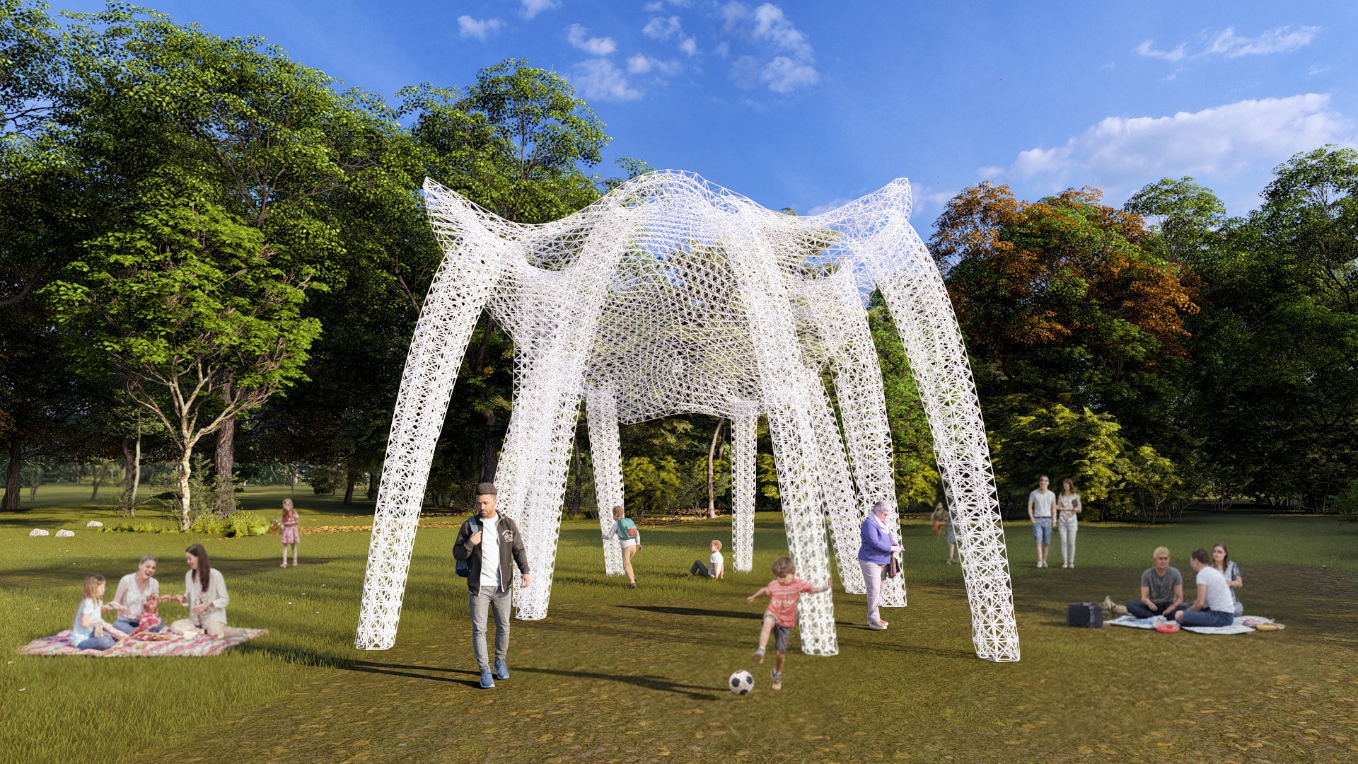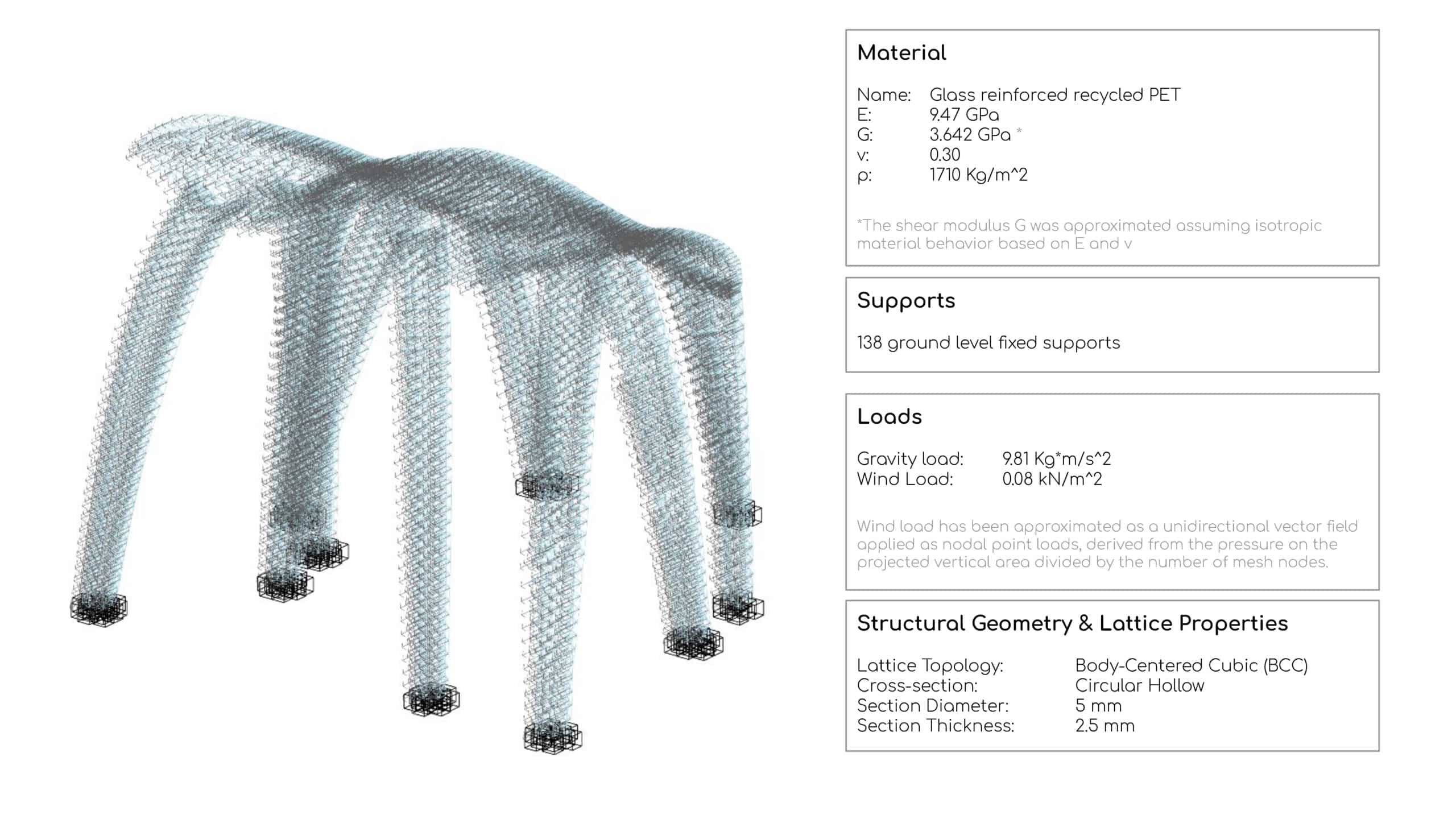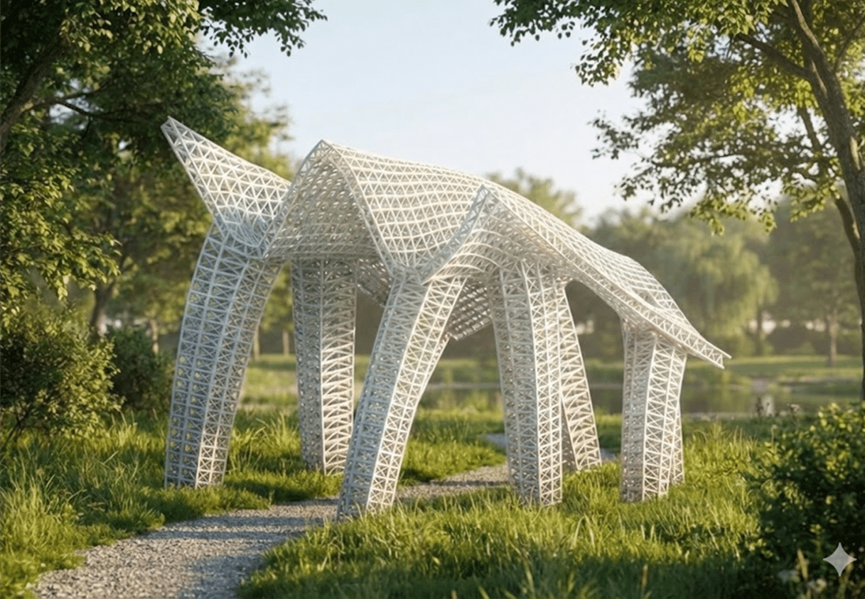 The parametrically generated lattice expresses structural performance, integrating form, structure, and material efficiency into a unified architectural system.