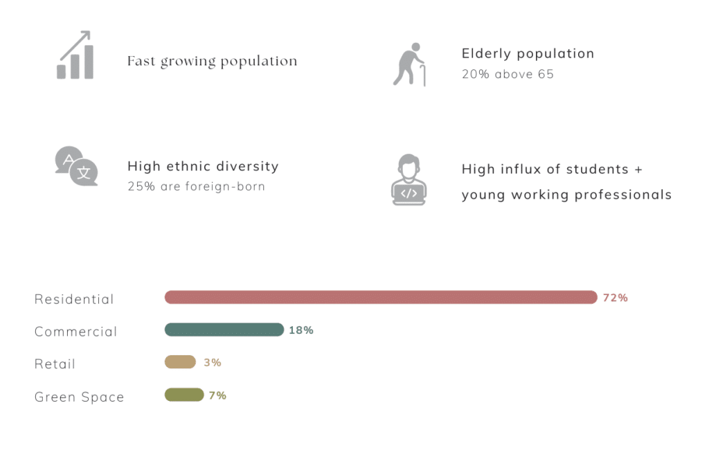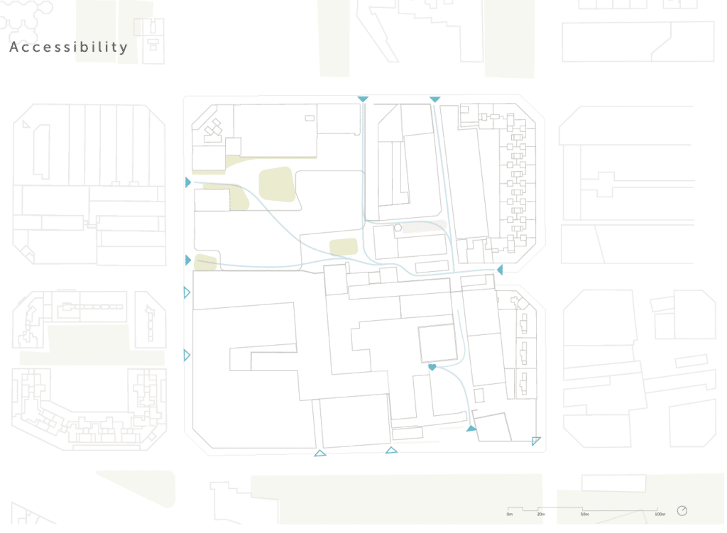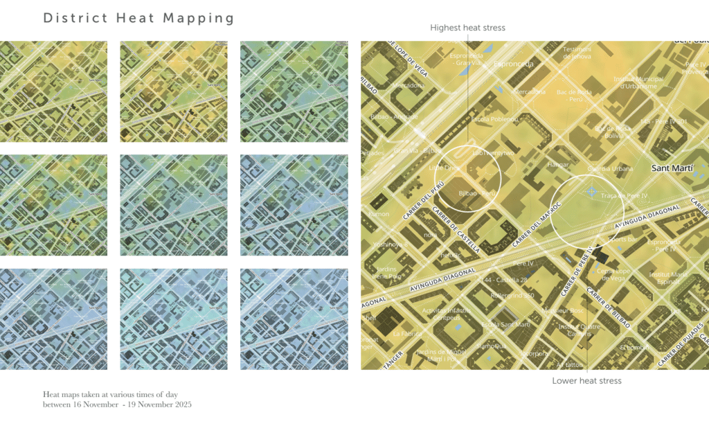 Surrounded by high-rise buildings along its perimeter, the site receives less natural ventilation. This enclosure increases heat retention at ground level, decreasing thermal comfort during warmer summer periods.
