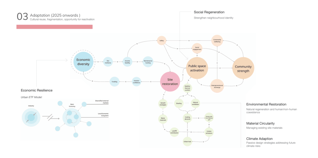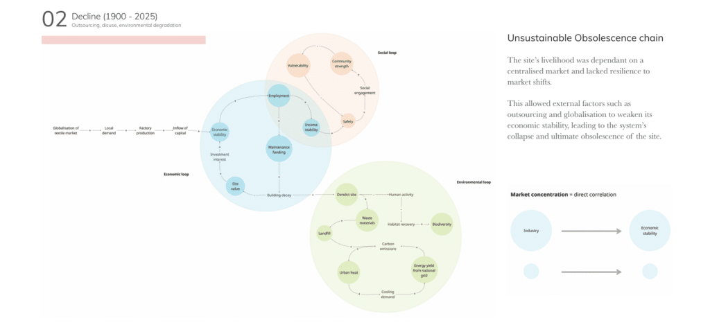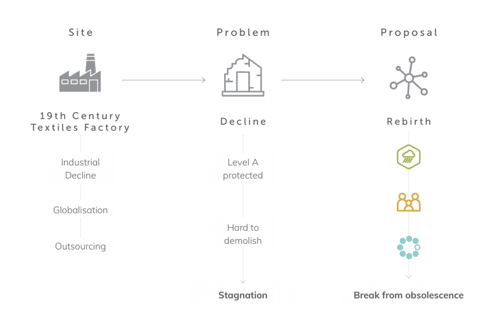 This project seeks to explore how issues of stagnation and obsolescence can be tackled whilst still enabling socio-economic and technological developments of our urban spaces. It will explore how they can be applied within architecture to evaluate how we can more effectively address issues of erasure whilst still permitting modern interventions and advancements to address the changing socio-economic needs as well as climate resilience strategies.