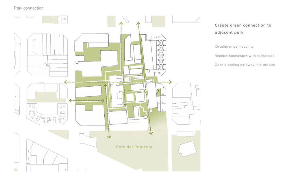 How the site plugs into Barcelona’s future systems.