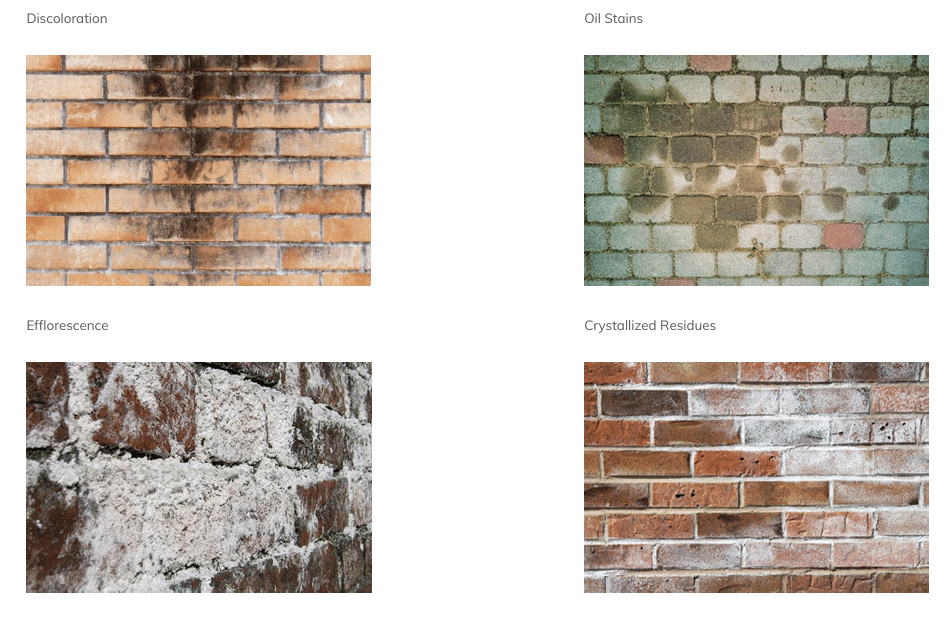 Clean bricks with low-pressure water and neutral detergent, not acid wash (which could mobilize contaminants).