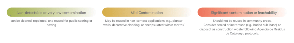 -Leachability (TCLP test) — determines whether contaminants could migrate out of the material.