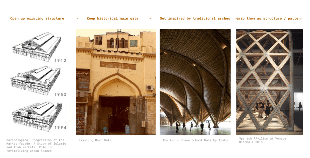 Initially, all surrounding buildings were considered for preservation. Upon closer study, however, the main gates emerged as the most historically significant elements. The design retains these gates and opens up the market to provide breathing space, making it visible and legible to pedestrians.