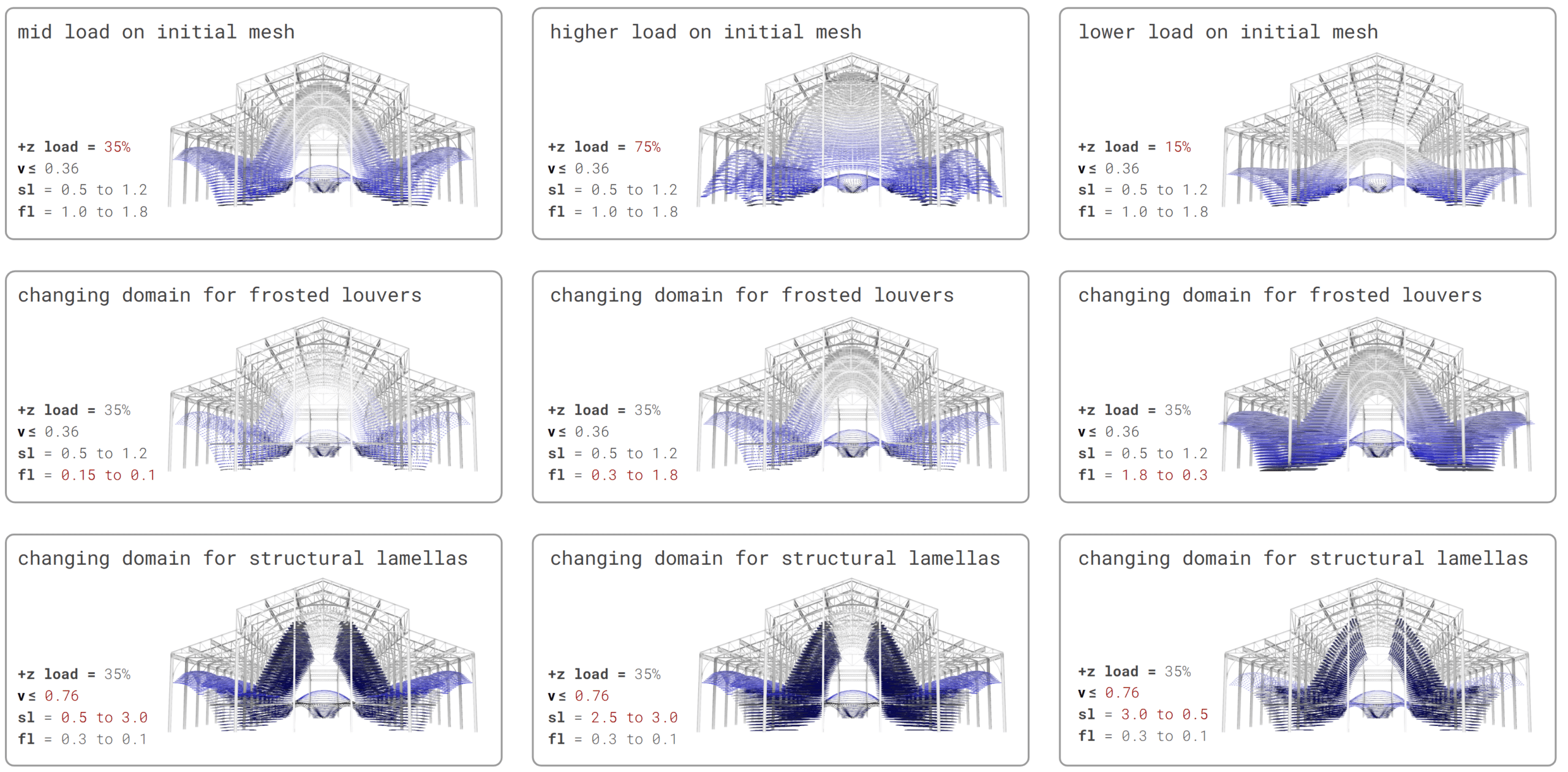 Iterative testing of vertical loads and louver domains to achieve the optimal structural balance .