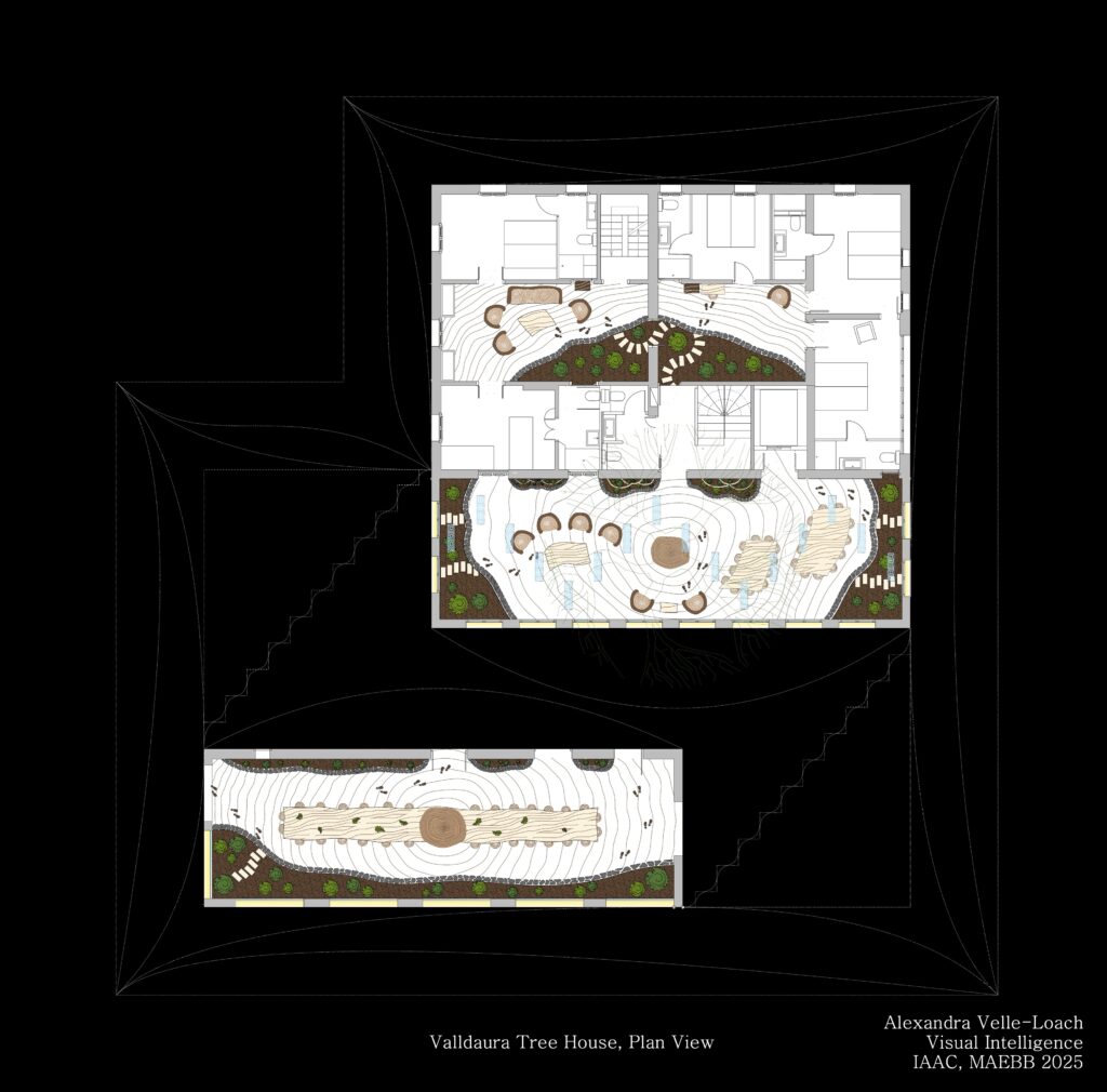 Pedro Pitarch led a Visual Intelligence course, and our assignment was to take the plans of Valldaura’s main building, and implement a “condition” of our choosing: a way to alter the building, or represent certain existing characteristics in a unique and interesting way.