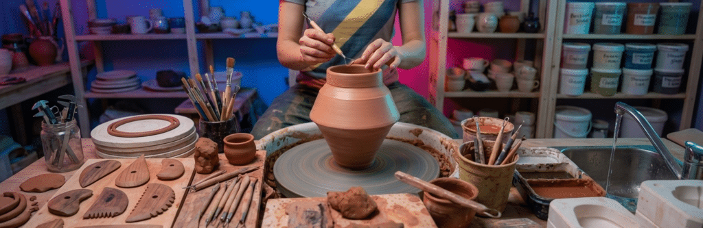 These are the actual 3D prints produced from ThrowForm’s exports, both vessels and rib tools, printed in PLA. Along with the rib tool that fits in the hand, the vessel print serves as a scale model to reference. What started as dragged points on a screen became objects you can hold and throw clay with.