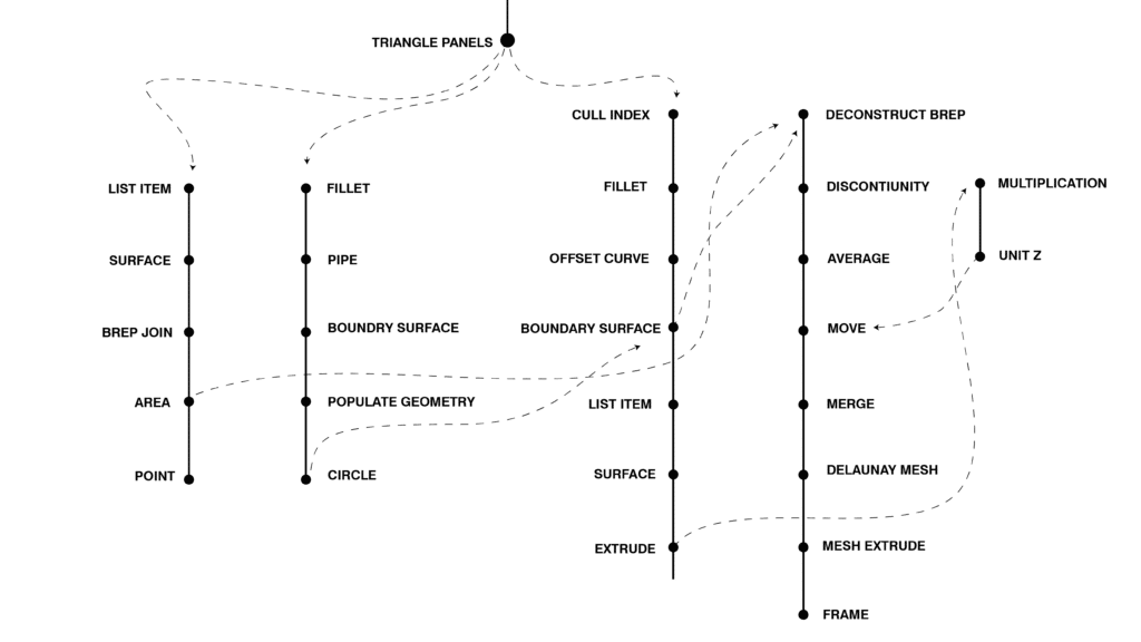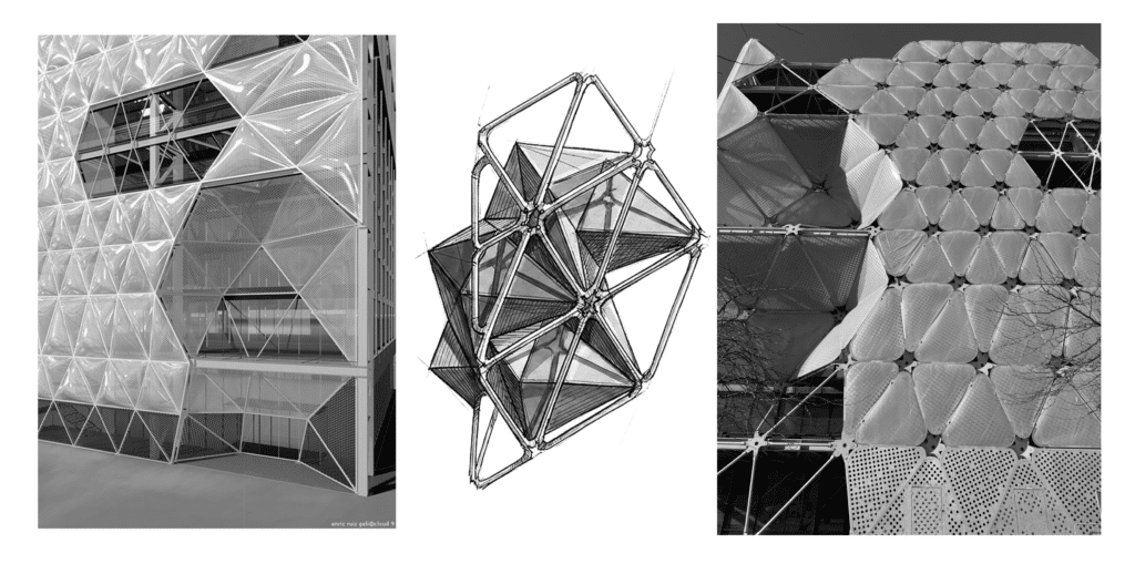 This Grasshopper based design reinterprets the kinetic panel system of the Media-TIC façade by Enric Ruiz Geli. Inspired by its triangulated geometry and responsive membrane logic, the proposed system explores a dynamic, articulated surface capable of adapting to light, shade, and visibility needs.