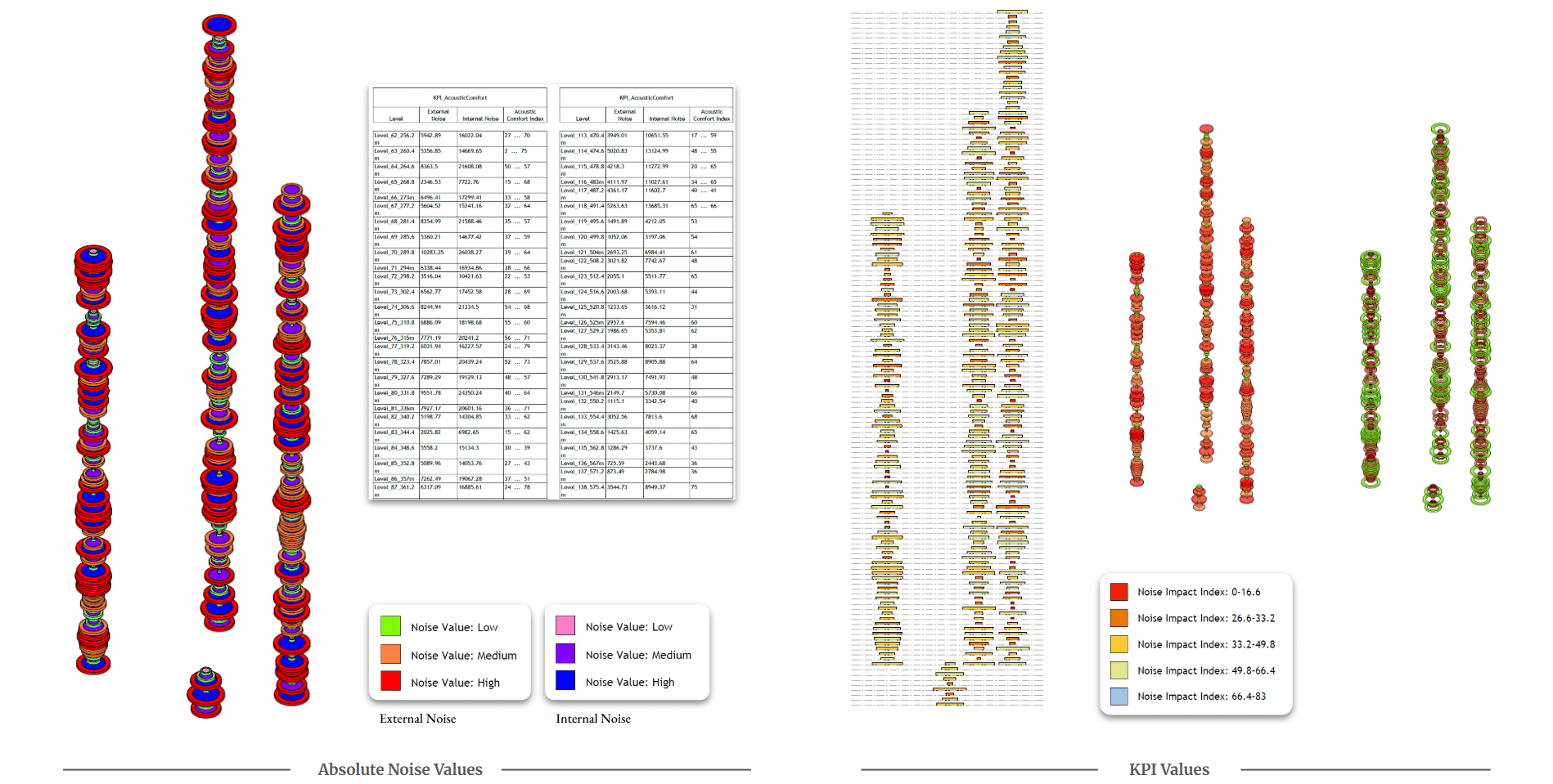 As a result, acoustic performance becomes immediately readable, with lower index values corresponding to more comfortable environments.
