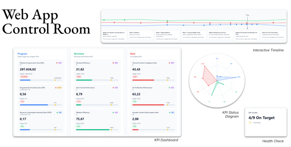 Another section of the platform focuses on timeline management, helping track the progress of each team while documenting key milestones throughout the design process. Together, these tools aim to make the project’s data visible, accessible, and actionable.