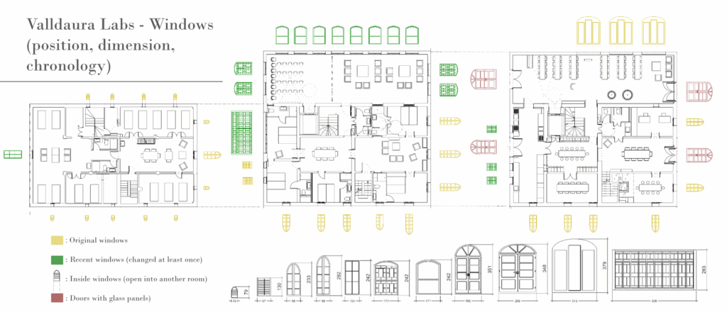 The 2D plan would consist of a catalogue of the house’s windows, not just their dimensions and positions but also their age to try and explore the different ways in which one can model a structure’s characteristics. I wanted to represent tangible, heterogeneous data as well, and decided that my 3D plan would be an analysis of the sunlight allowed in two different rooms through their windows.