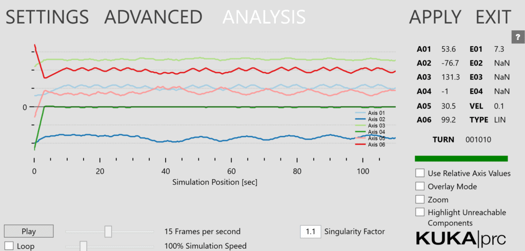 Robotic milling strategy: For the simulation of the robot’s tool path, the algorithm further divided the 10 patches into 38. For each patch, we had to manually examine the robot and the tool’s path making sure that: (1) The robot does not collide with itself, (2) the robot does not collide with the mounting table, our geometry or other objects that might be in the room, (3) the robot’s tool and/or spindle does not collide with our material and (4) the robot does not make any sudden movements in any of its 6 axes. Each simulation generates a file that contains instructions for the robot. Each file has to be initiated manually by the user/robot operator (us).